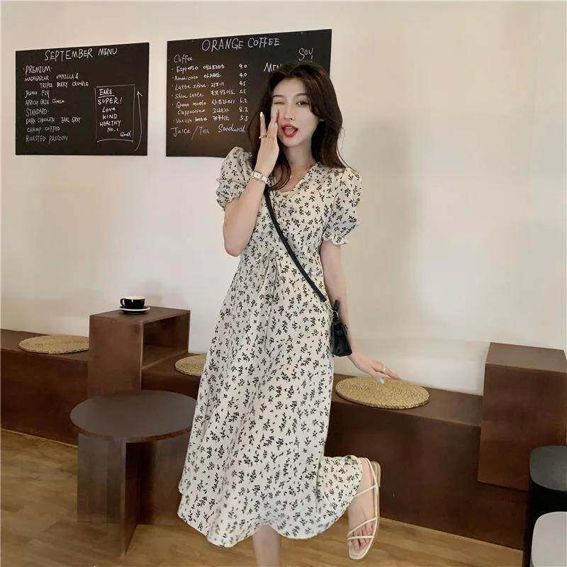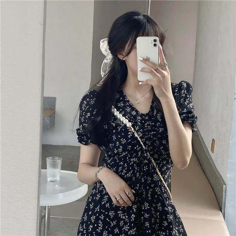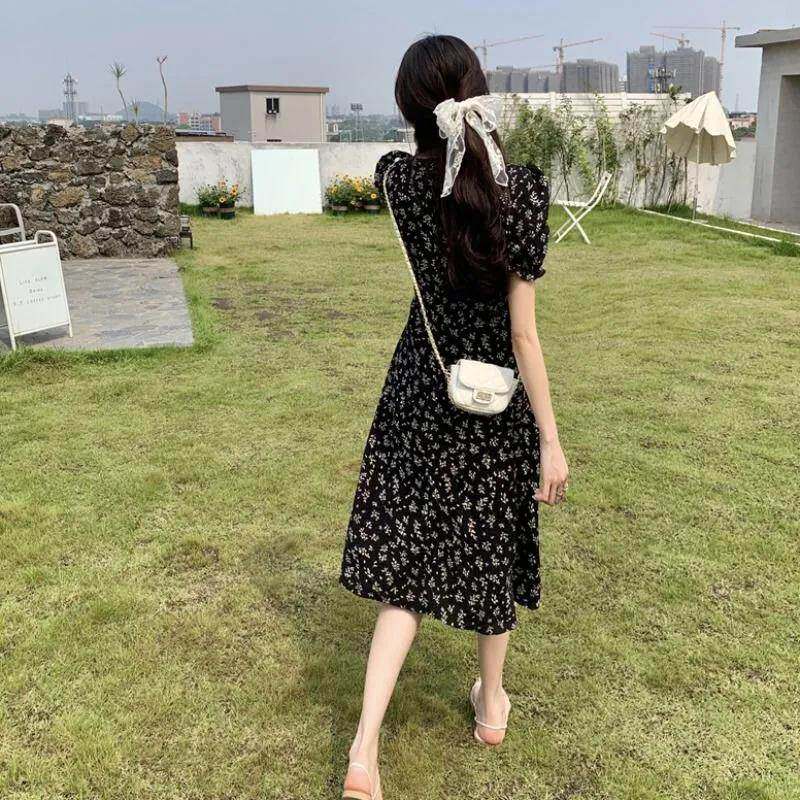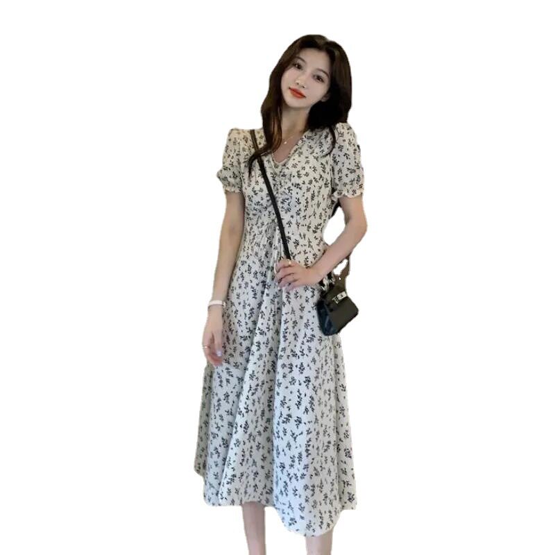 夏季2024新款碎花气质裙子小个子中长款短袖法式小清新连衣裙仙女