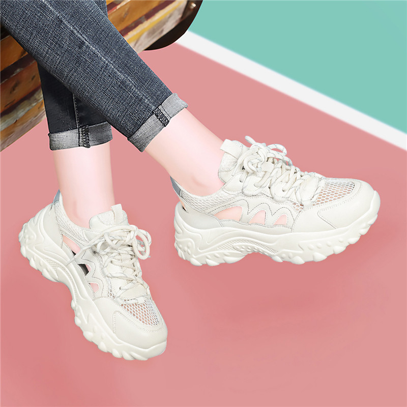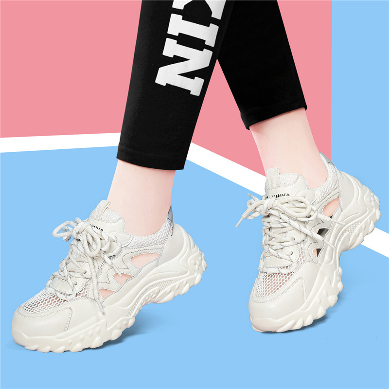 镂空老爹鞋女款2026新款夏季薄款网面透气网鞋厚底轻便休闲运动鞋