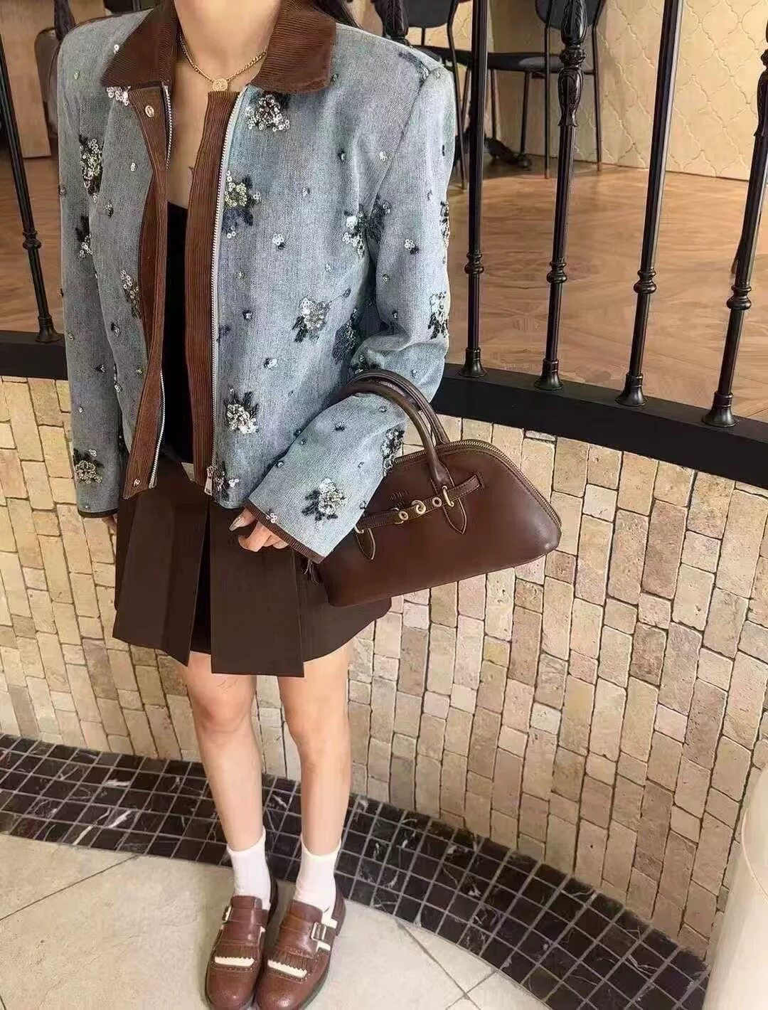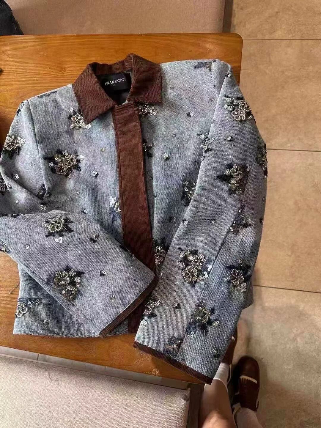 2026年春款新款欧货设计感圆领重工钉珠长袖牛仔外套夹克上衣女潮