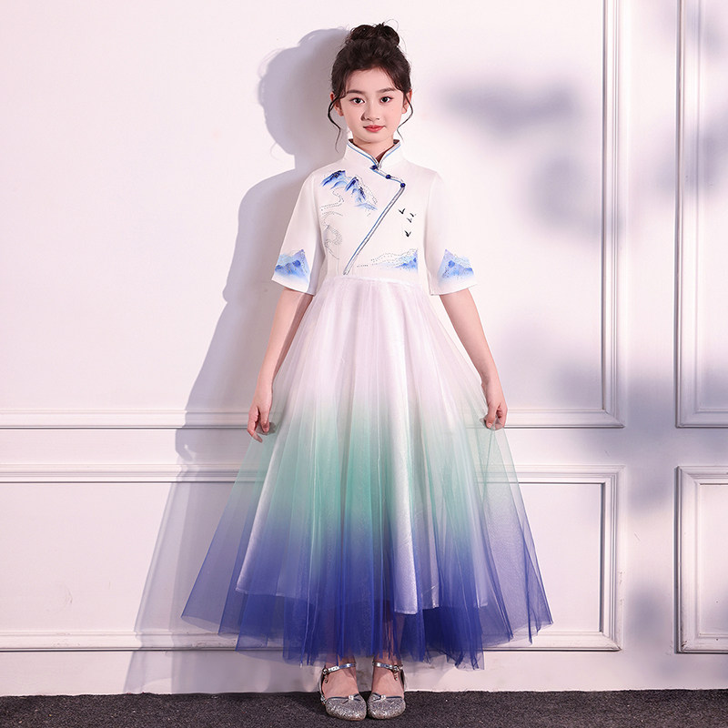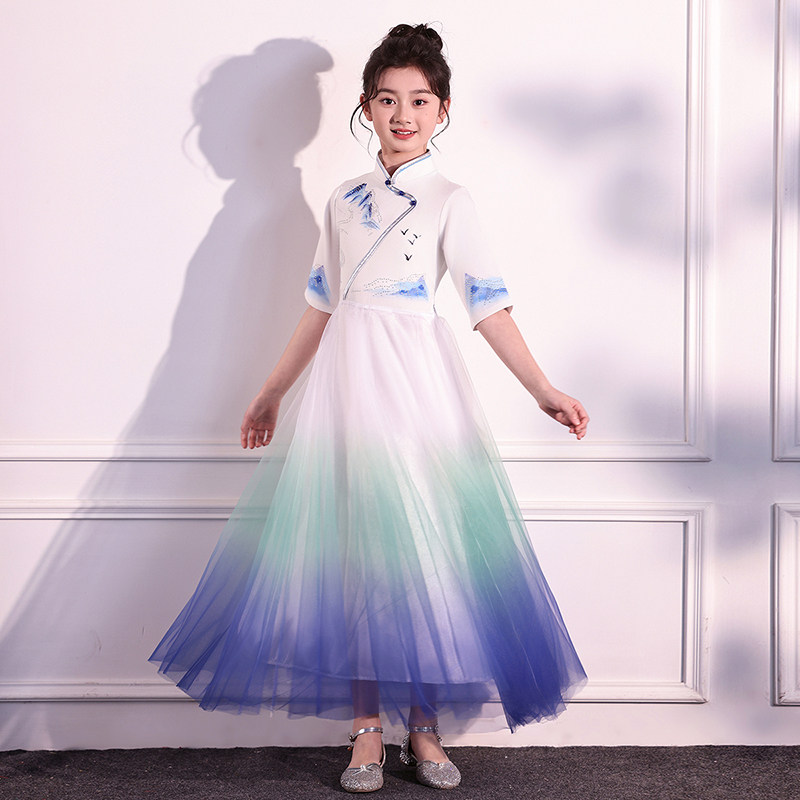 六一儿童大合唱团朗诵演出服女童中国风小学生口才演讲比赛礼服装