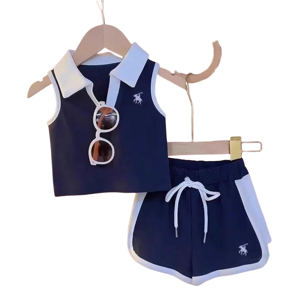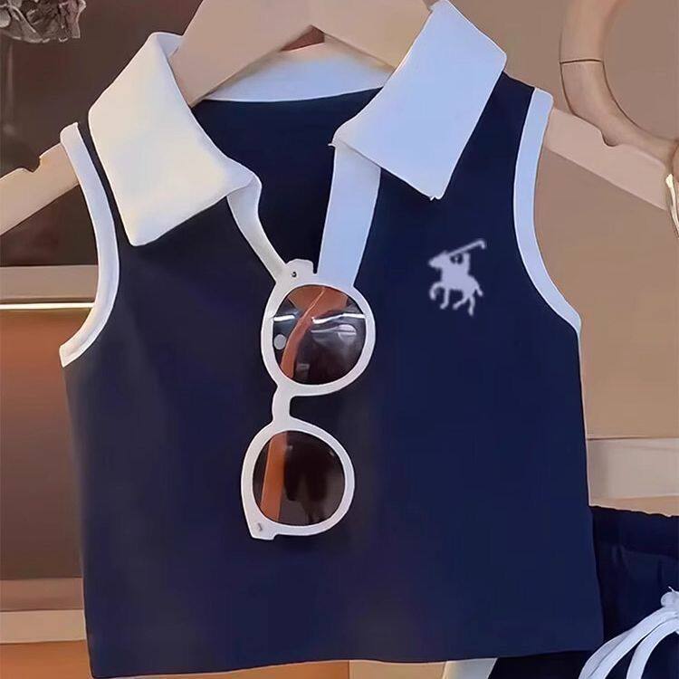 女童套装夏季学院风2026新款儿童休闲洋气无袖背心短裤运动两件套