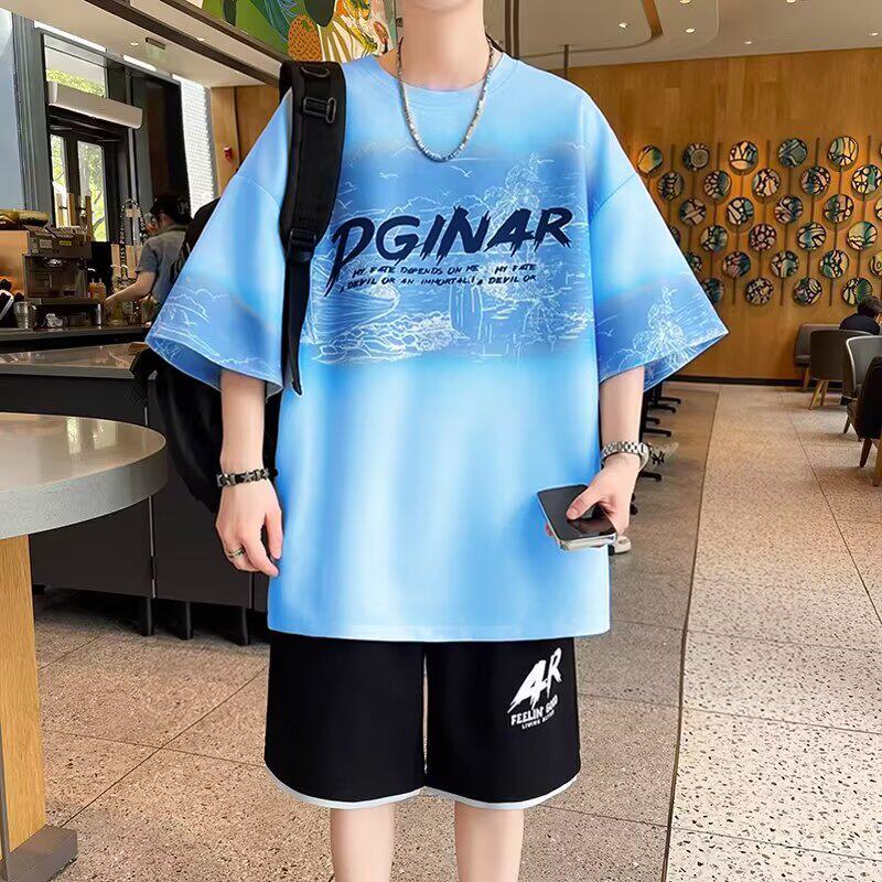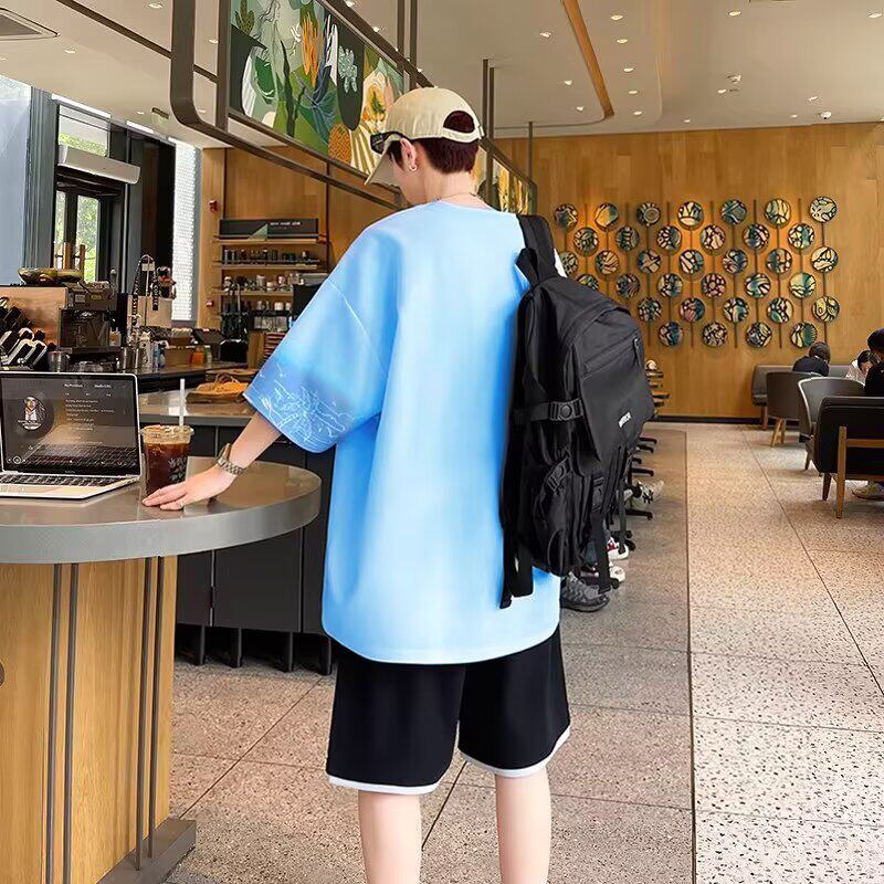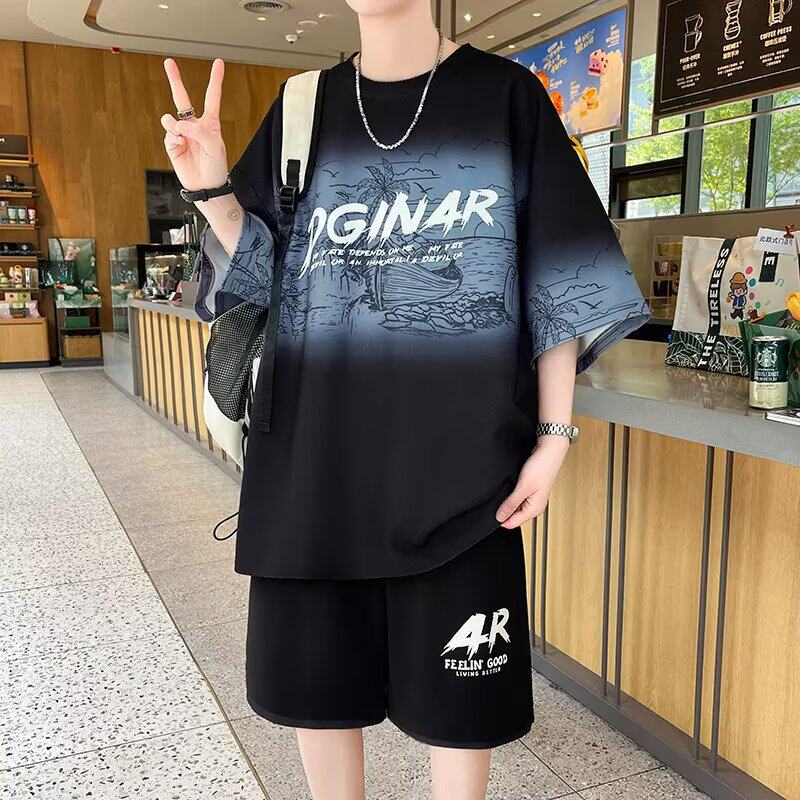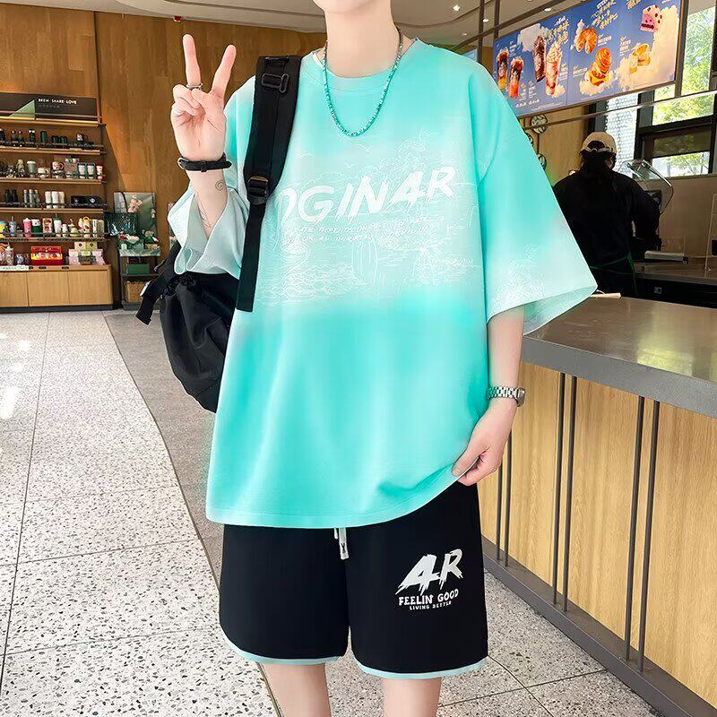 短袖男套装夏季2026新款t恤男潮流休闲宽松青少年一整套穿搭帅气T