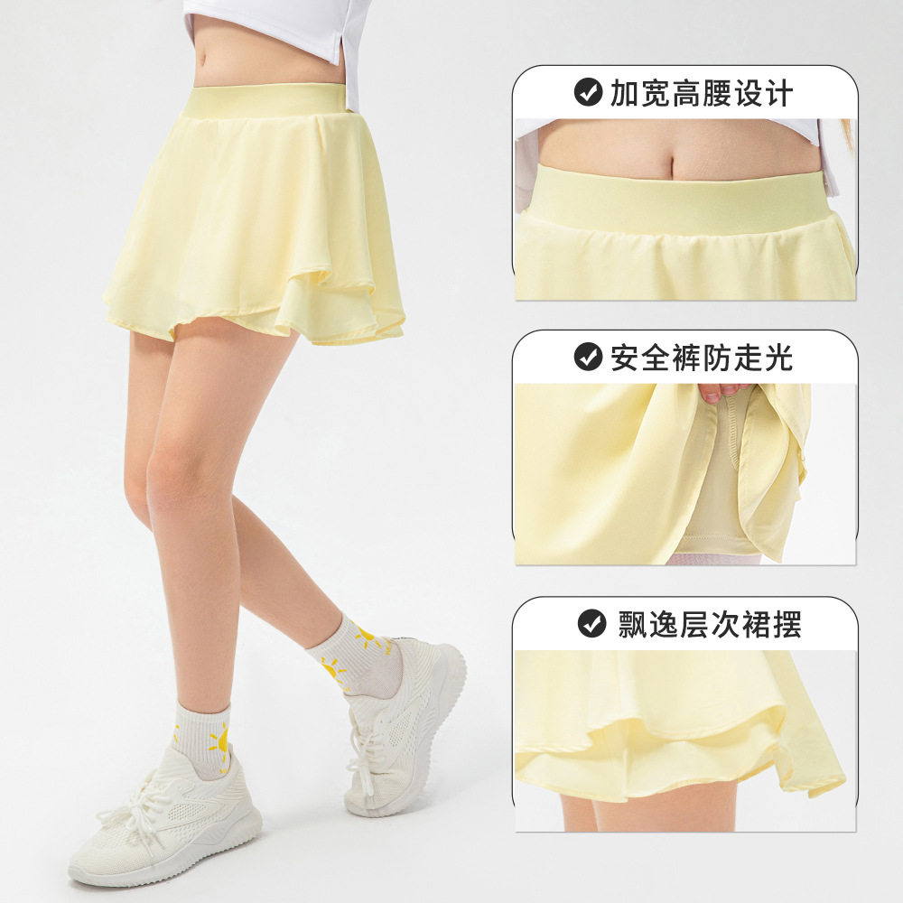 新款女童瑜伽裙儿童打网球羽毛球运动短裙子舞蹈训练带安全短裤裙