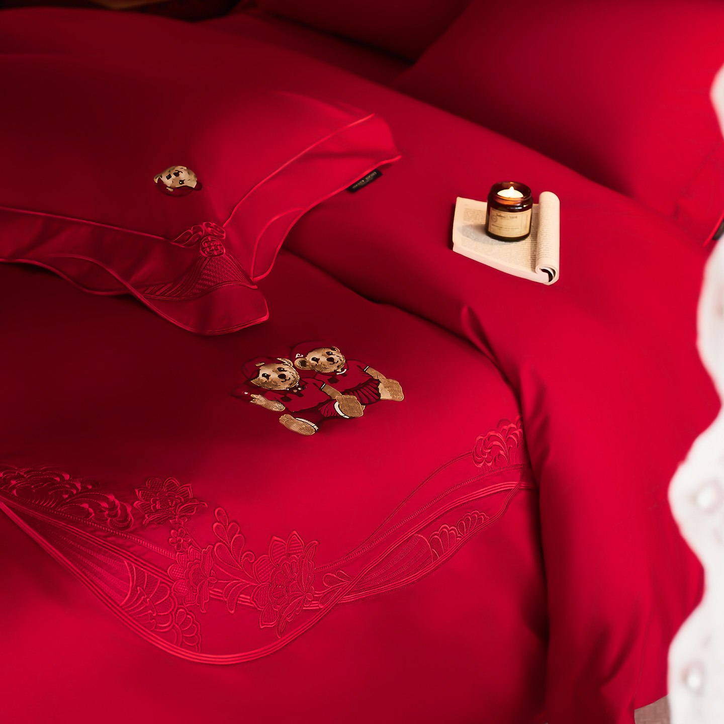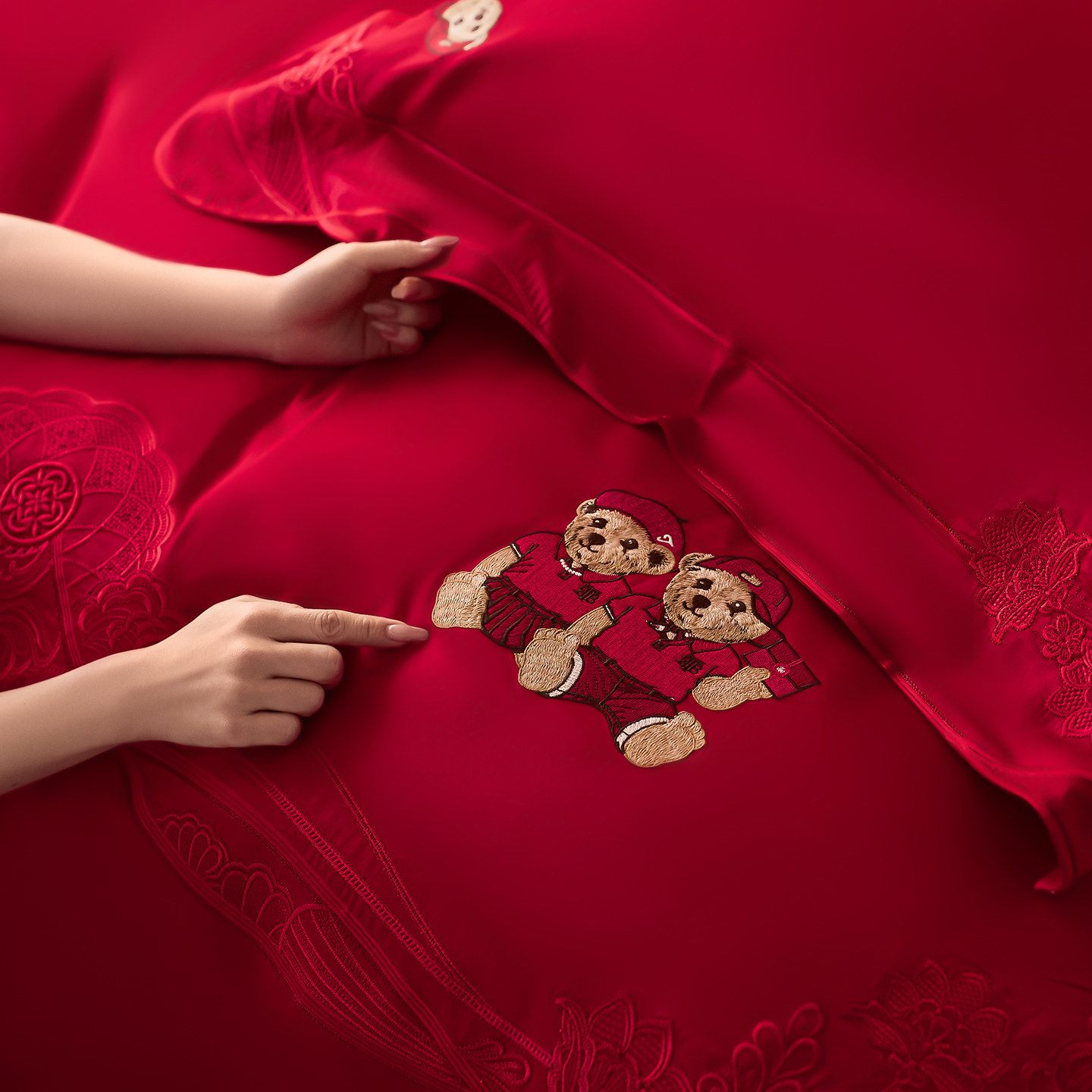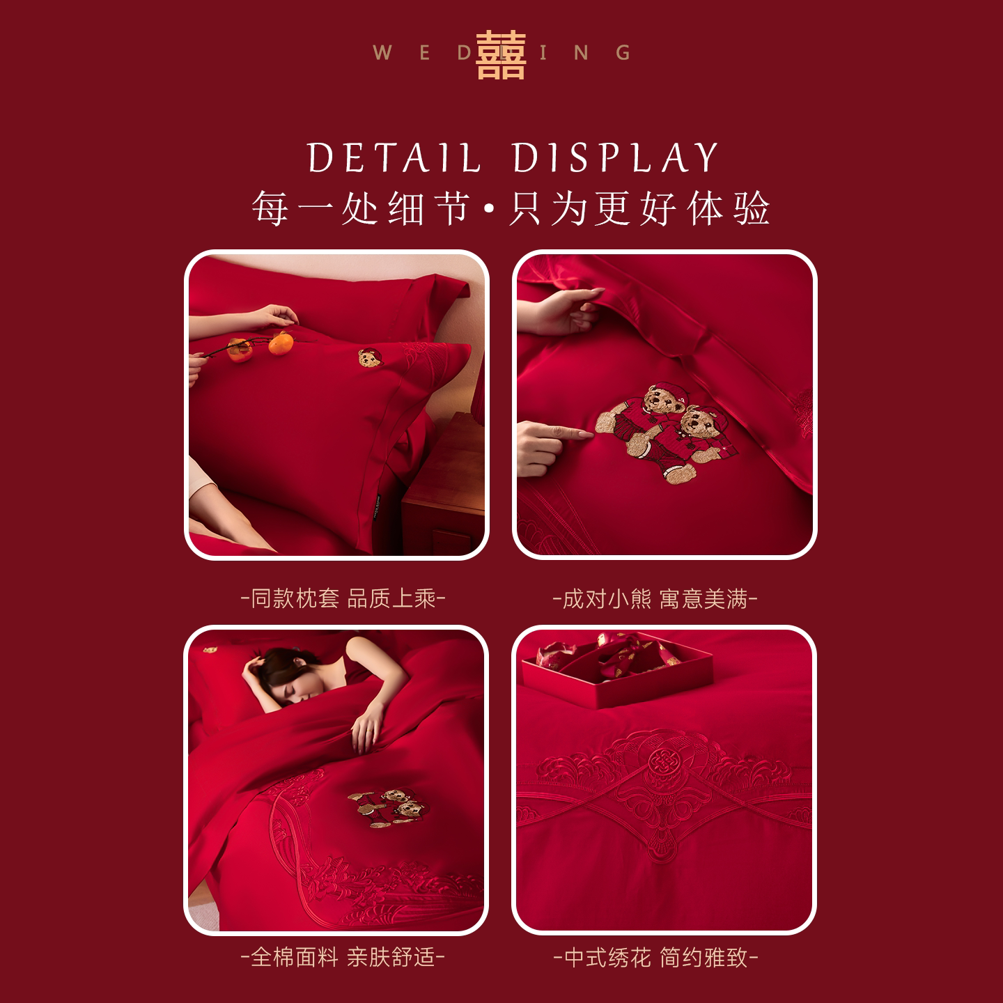 TW小熊纯棉高端红色结婚四件套年轻人婚房喜被床上用品高端上档次