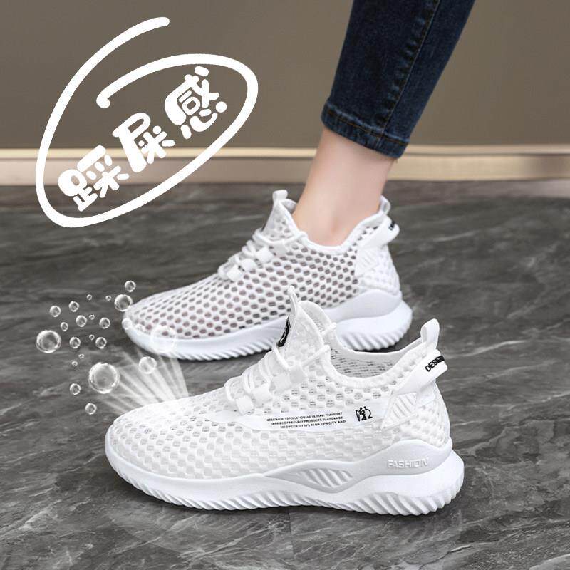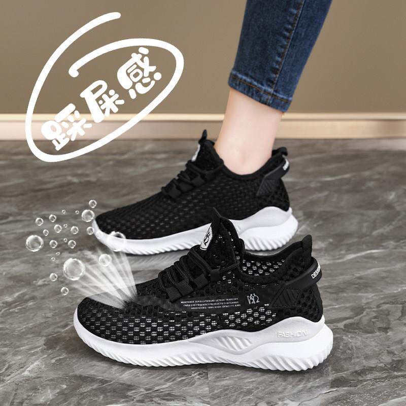 春夏网眼透气女鞋运动鞋大尺寸41至43中空网眼鞋黑色工作鞋0309k