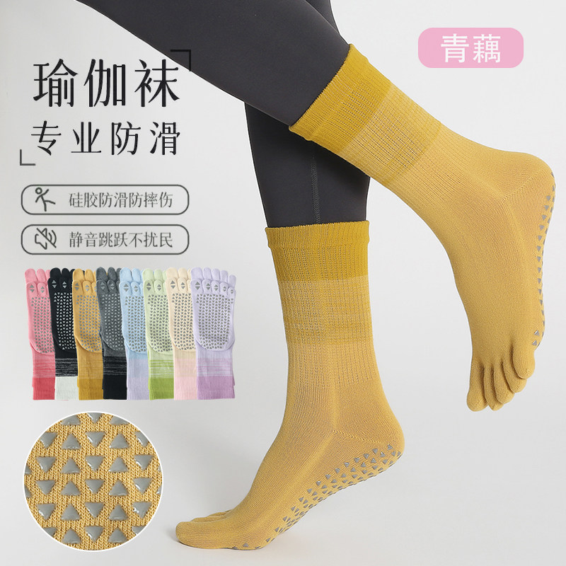 纯棉瑜伽袜专业防滑普拉提袜多巴胺五指袜中筒夏天地板袜脚趾袜女