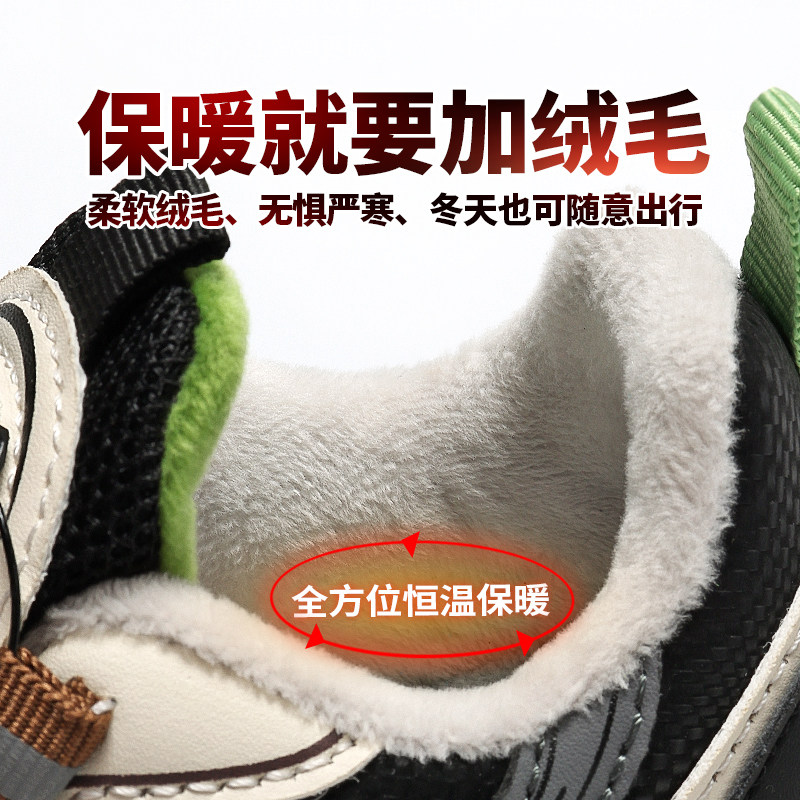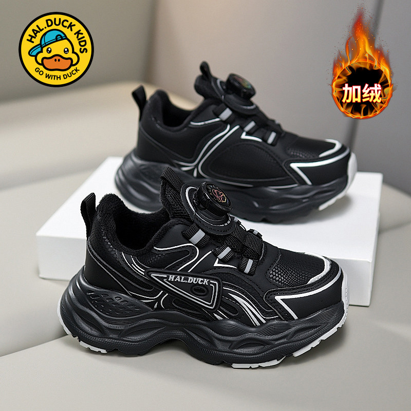 小黄鸭男童鞋子2025新款冬季儿童运动鞋加绒保暖旋纽扣黑色棉鞋潮