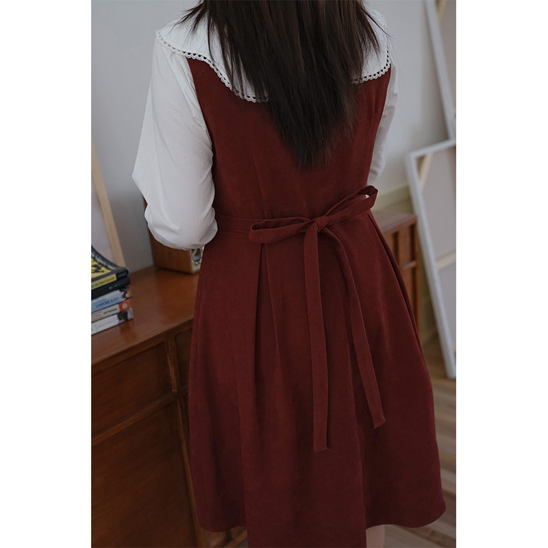 311线报网描述:气质V领收腰背心裙显瘦淑女减龄红色连衣裙