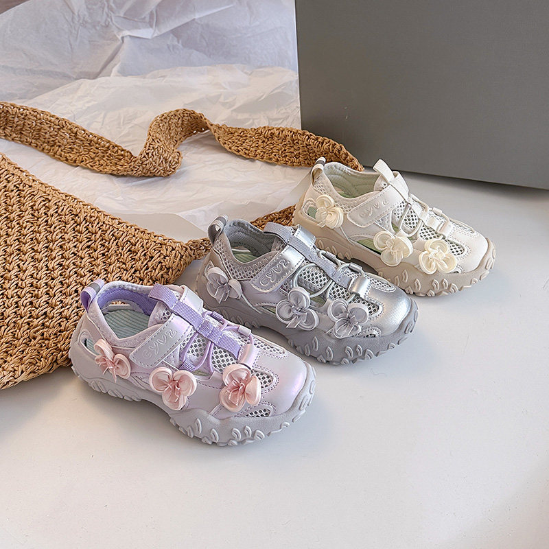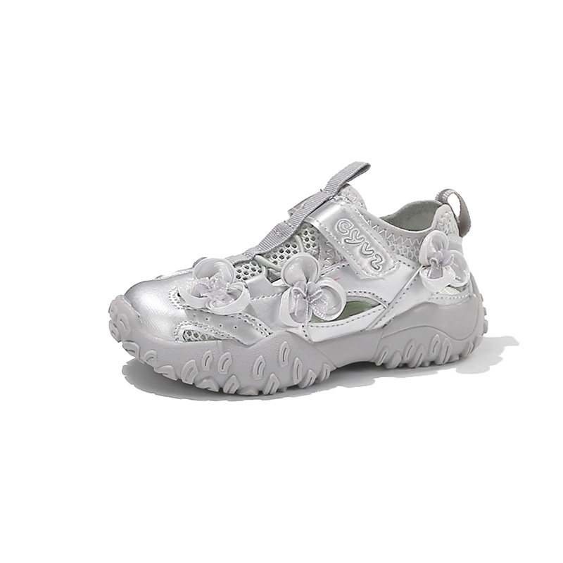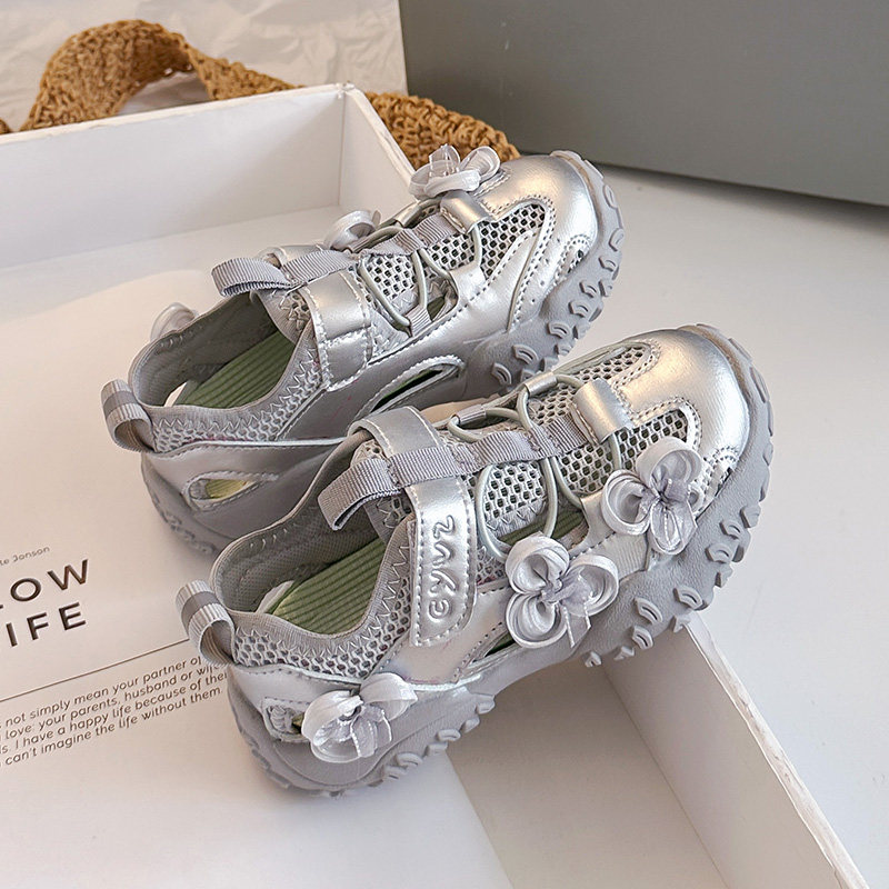 2026春夏新款女孩银色女童鞋子大童春款单网儿童运动鞋公主德训鞋
