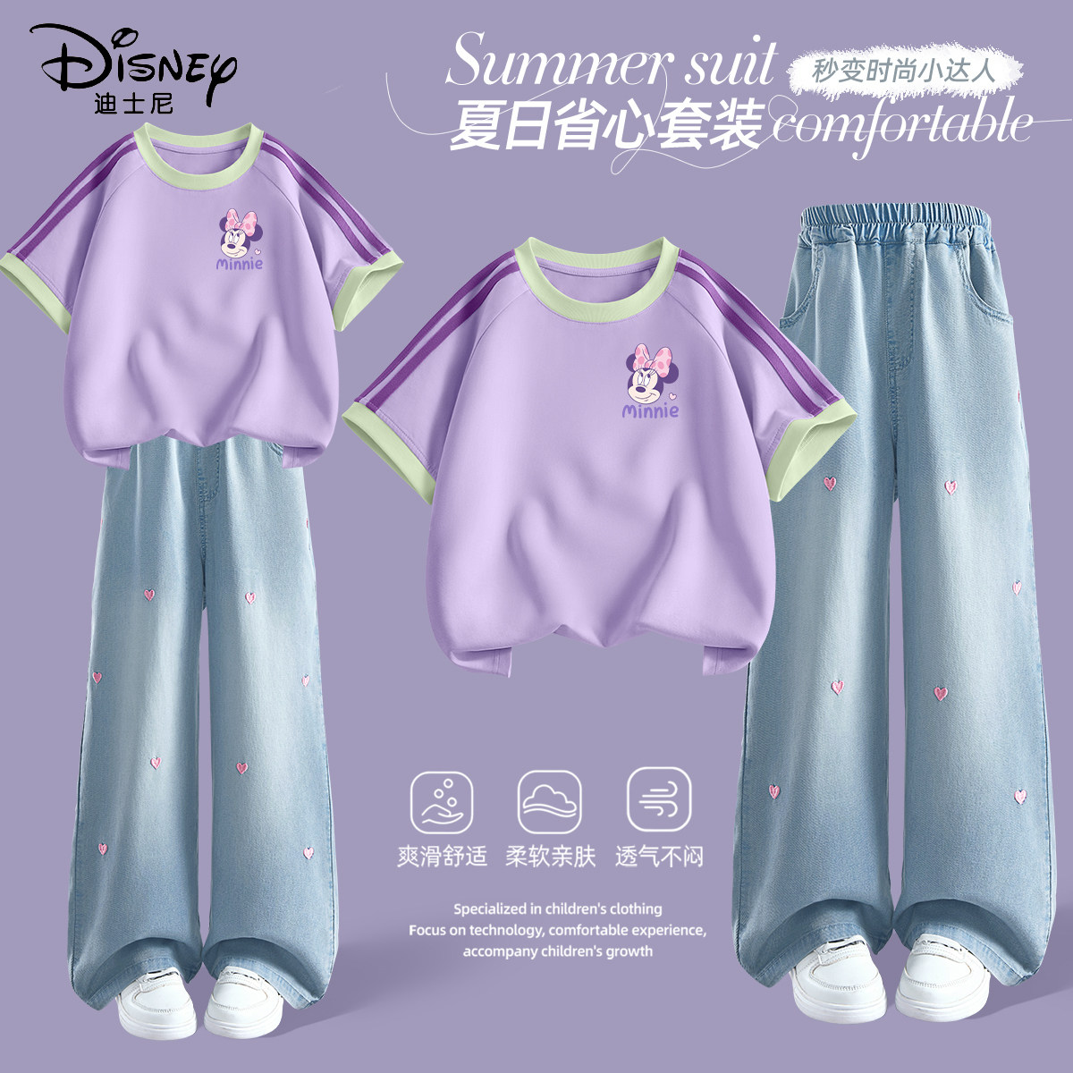 迪士尼女童夏套装2026新款时尚洋气时髦夏季流行短袖儿童夏装女孩