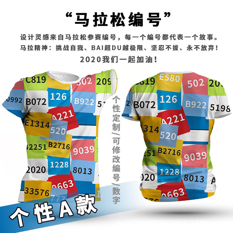 马拉松圆领速干T恤全身印个性定制logo跑步健身工作服广告衫印字