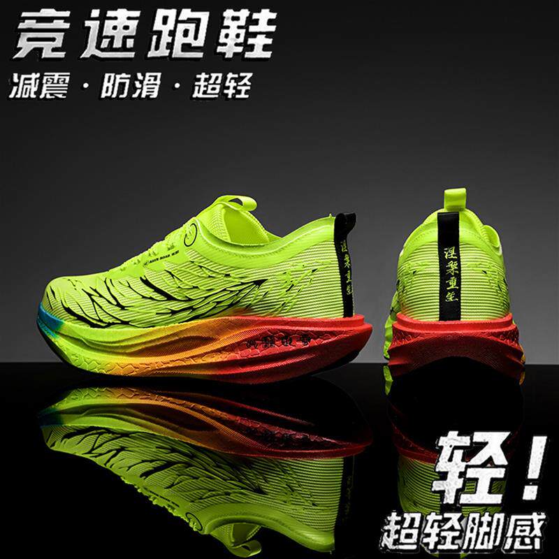 碳板跑步鞋子男鞋秋季男孩大童学生青少年软底减震荧光绿运动跑鞋