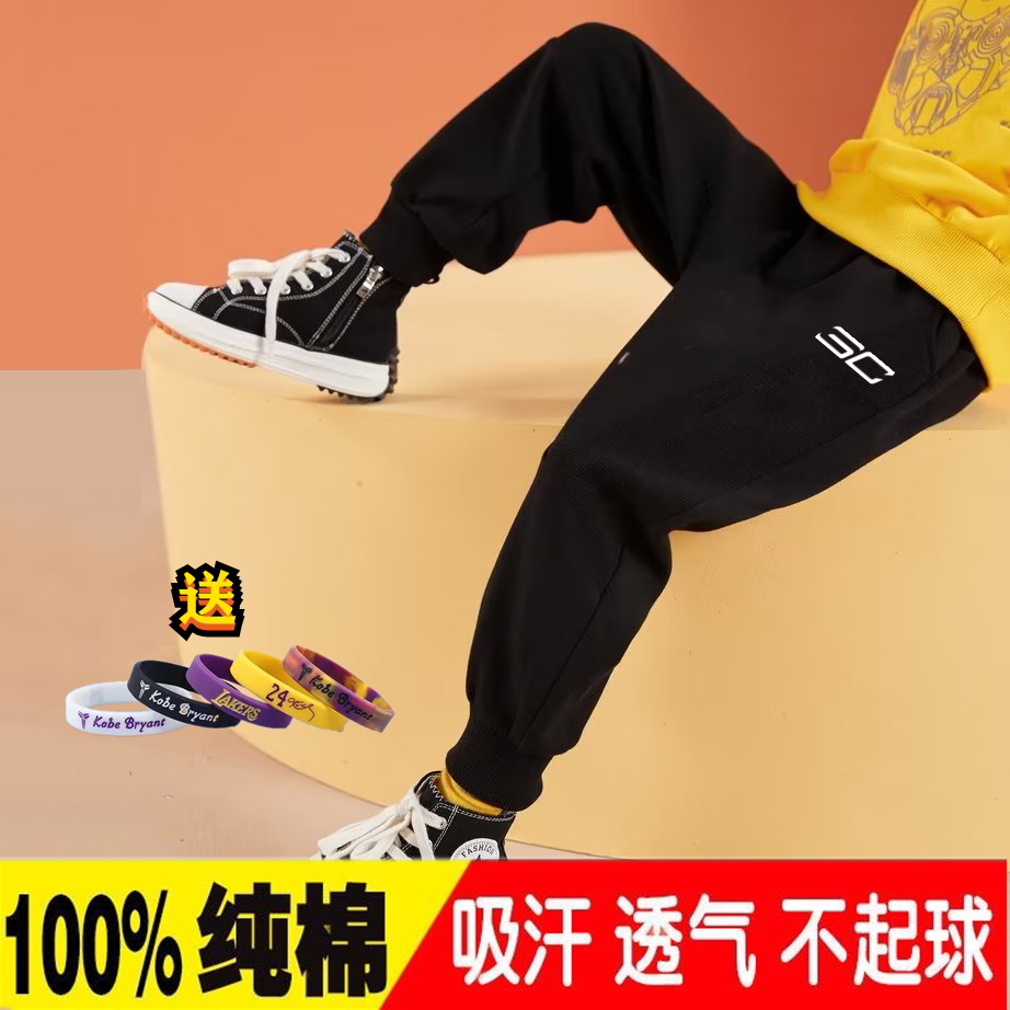 中大童男儿童美式篮球运动长裤纯棉训练卫裤宽松束脚裤春秋季10岁
