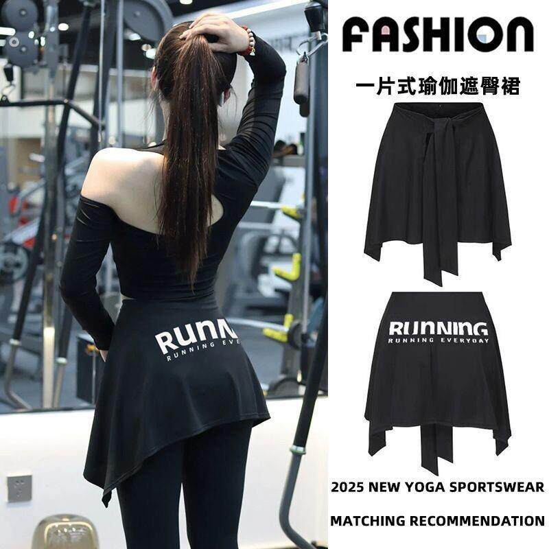 瑜伽裤遮挡裙防尴尬小裙子运动健身裤屁帘跑步围裙一片式遮臀裙罩