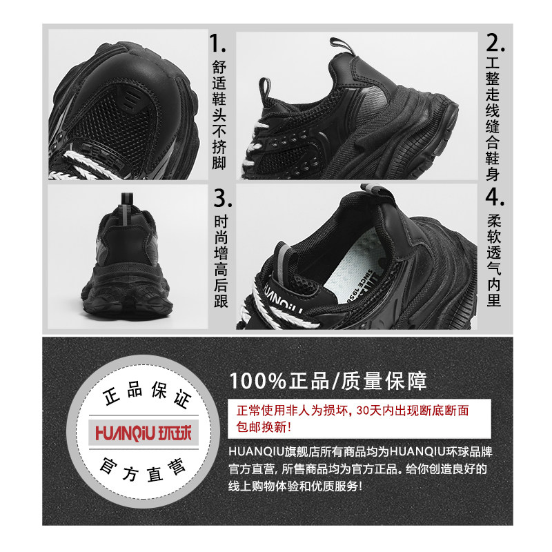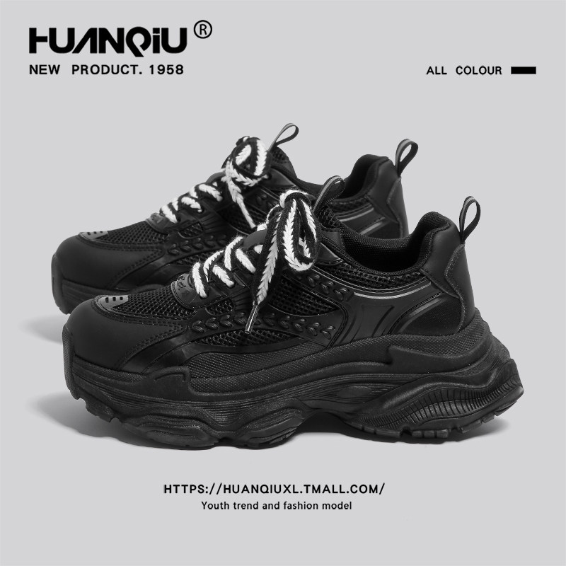 环球厚底增高黑色老爹鞋女2025年新款夏季薄款网面透气休闲运动鞋