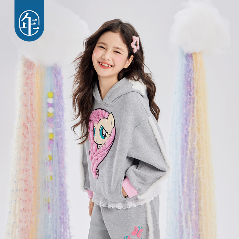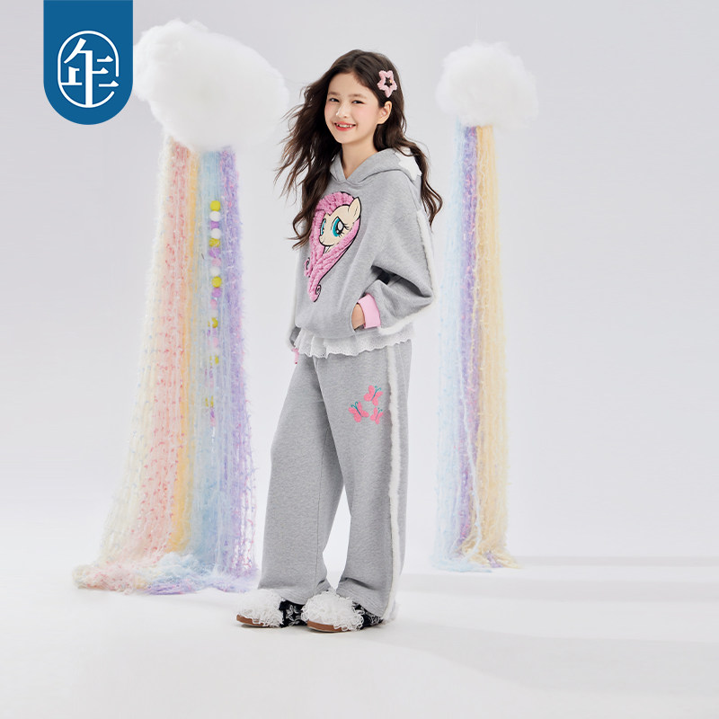 小马宝莉联名年衣童装套装加绒秋冬新款女童休闲卫衣长裤连帽上衣