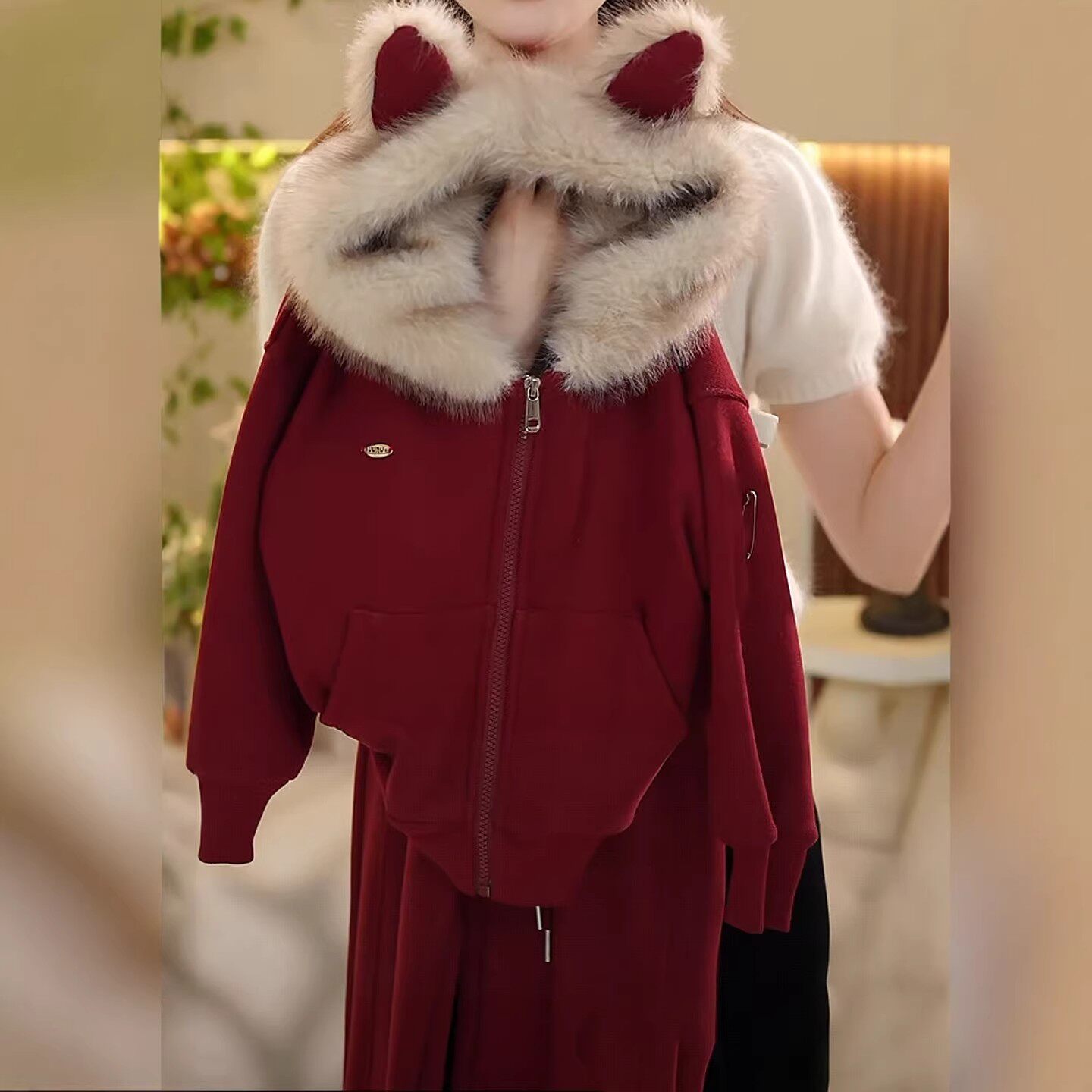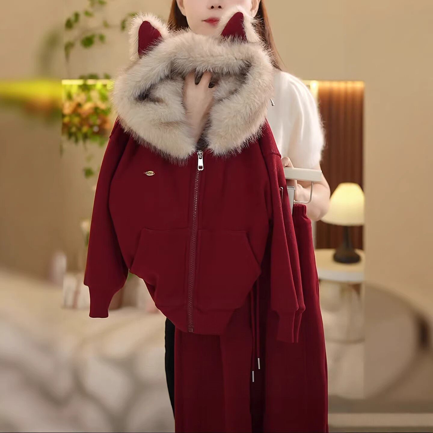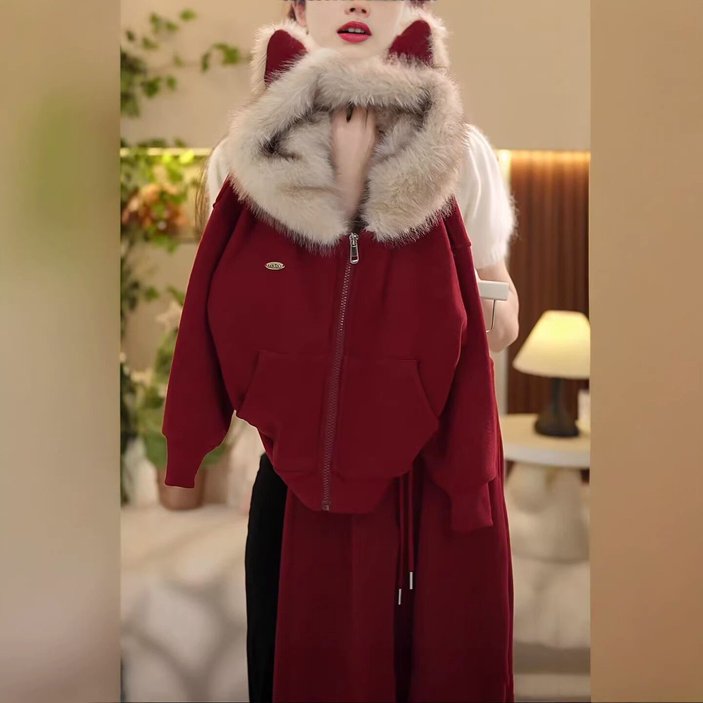 女童秋冬韩版连帽卫衣套装儿童新年拜年服加绒过年两件套2025新款