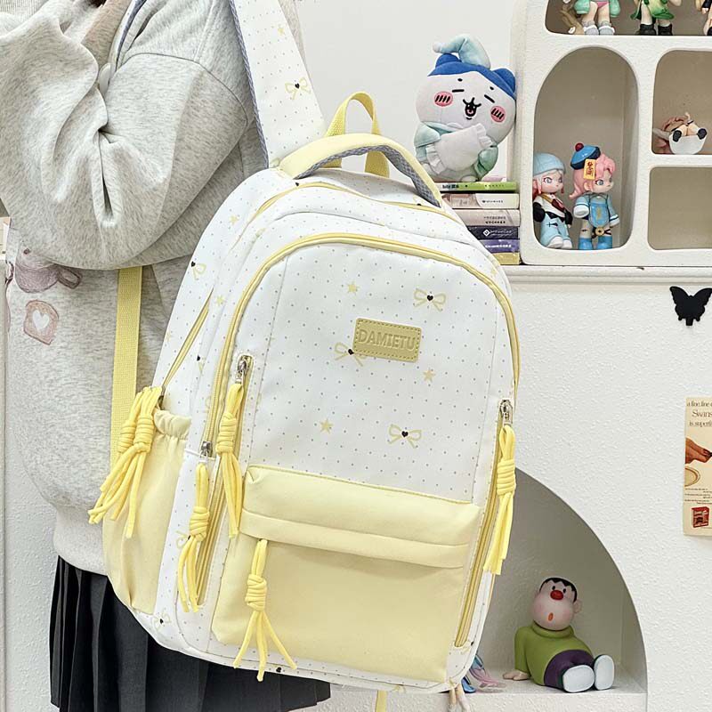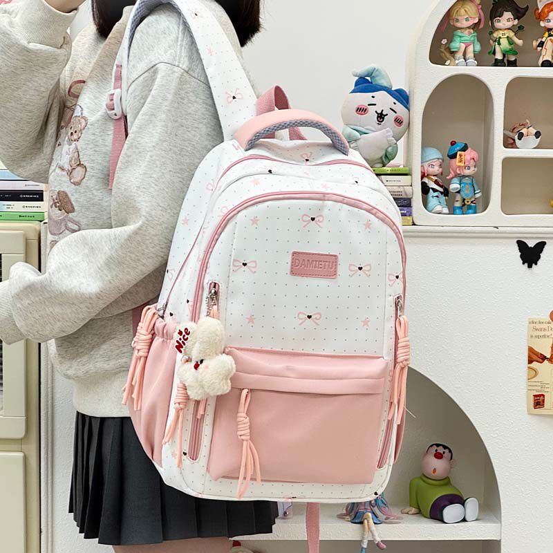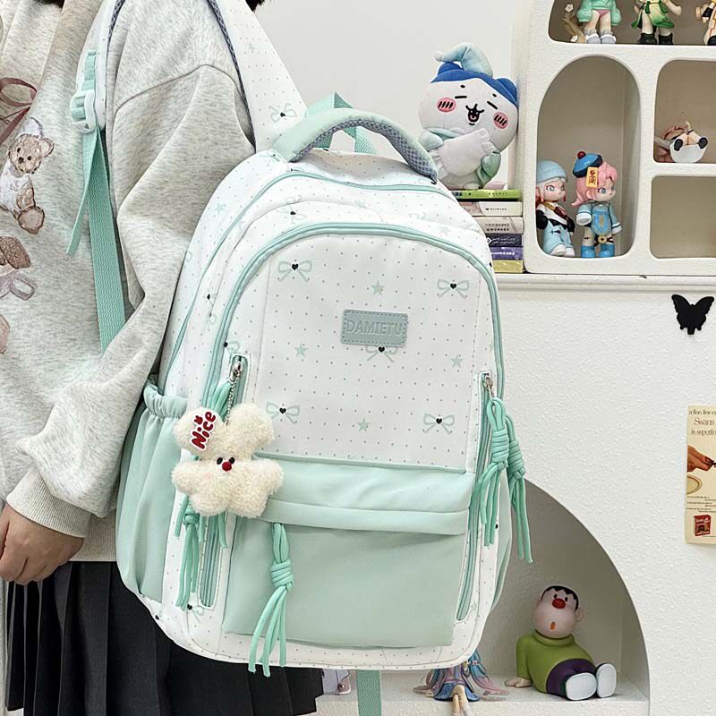 日系书包女2026大容量高中初中生双肩包绿色蓝色黑色帆布粉色涤纶