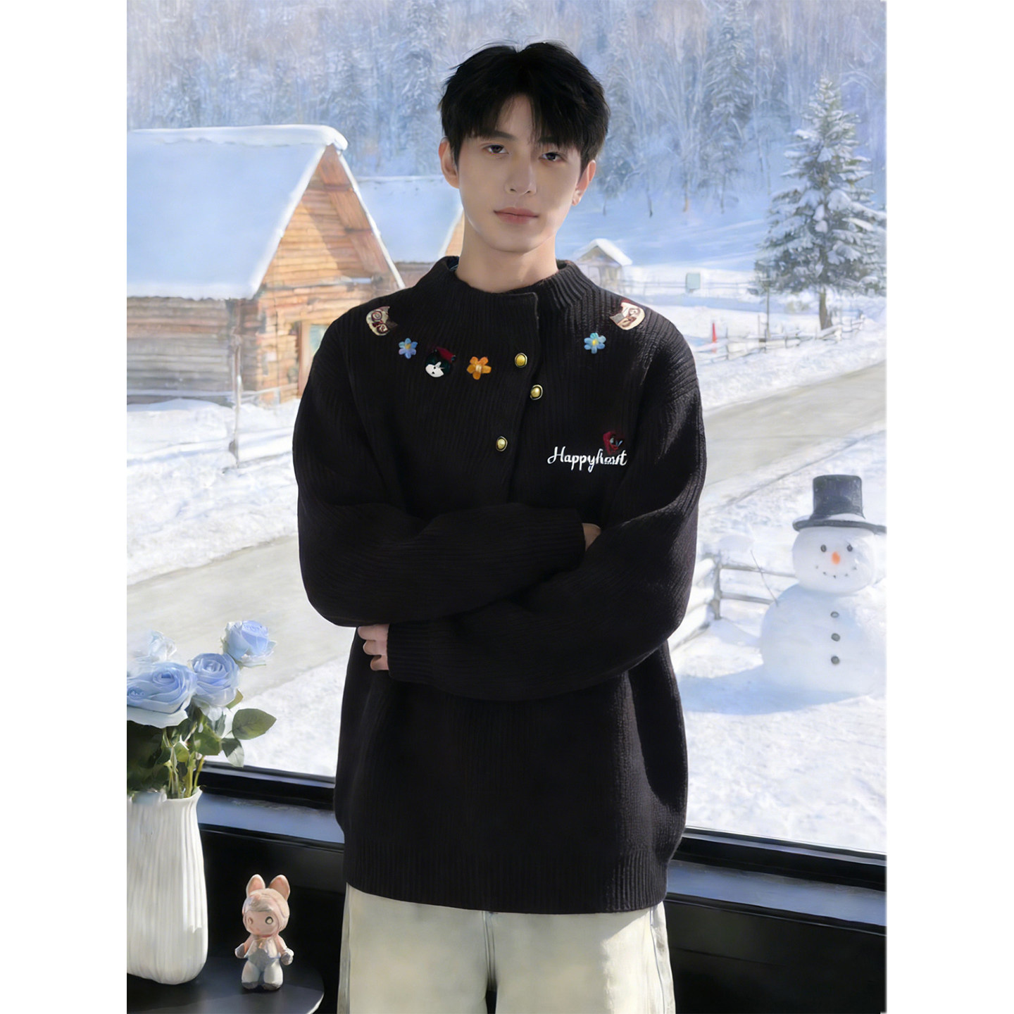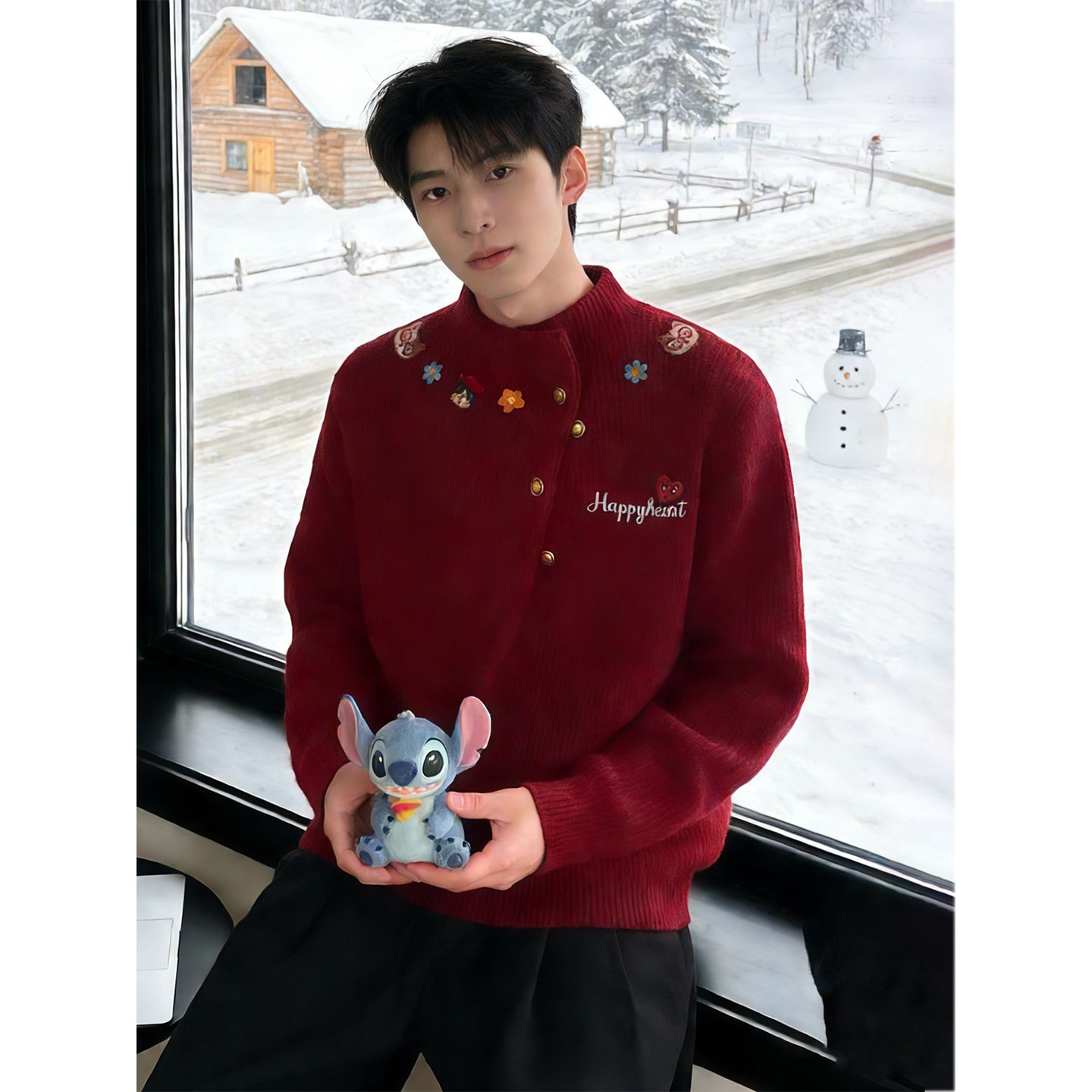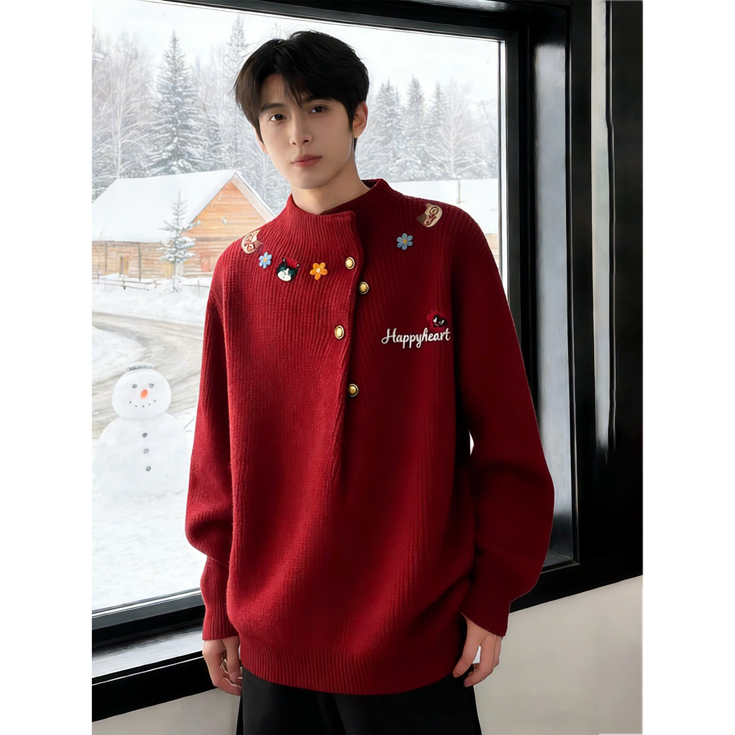 311线报网描述:本命年马年刺绣红色毛衣男款冬季新年氛围感