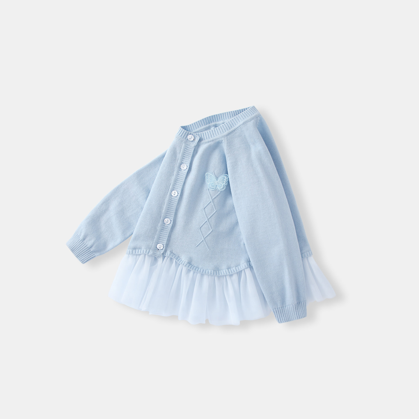 女童套装春装女宝宝洋气针织网纱裙打底裤婴儿春季薄款分体两件套
