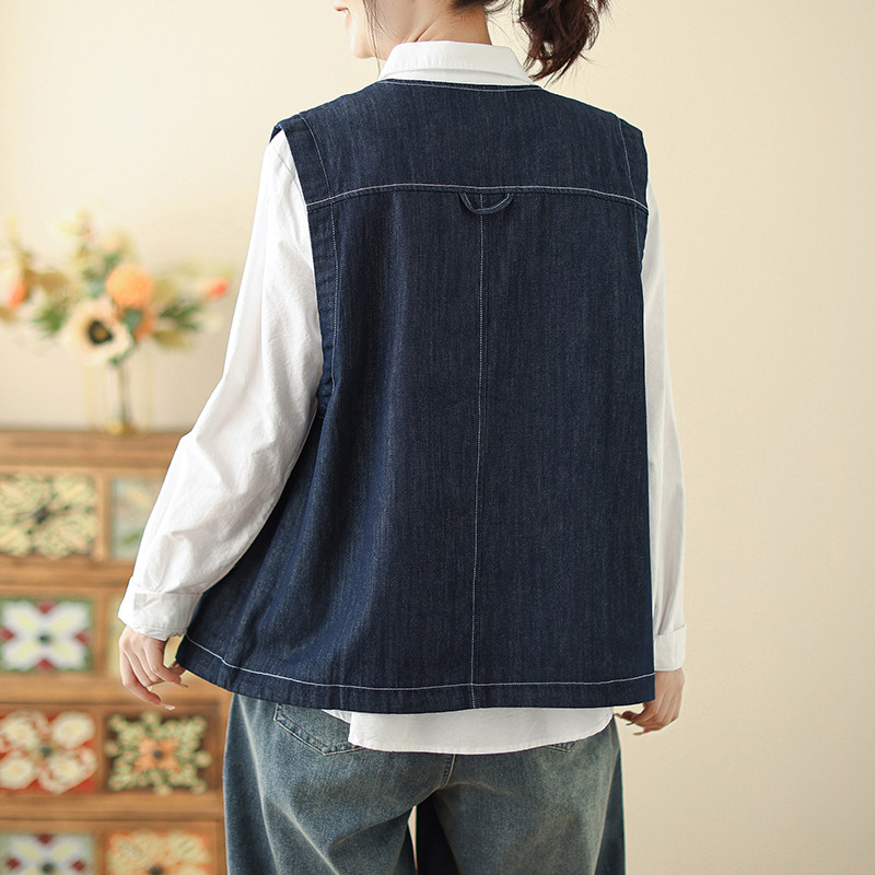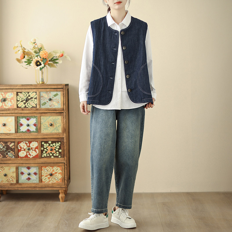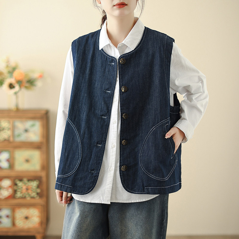 2026早春新款复古圆领马甲女士韩版宽松明线设计叠穿坎肩马夹外套
