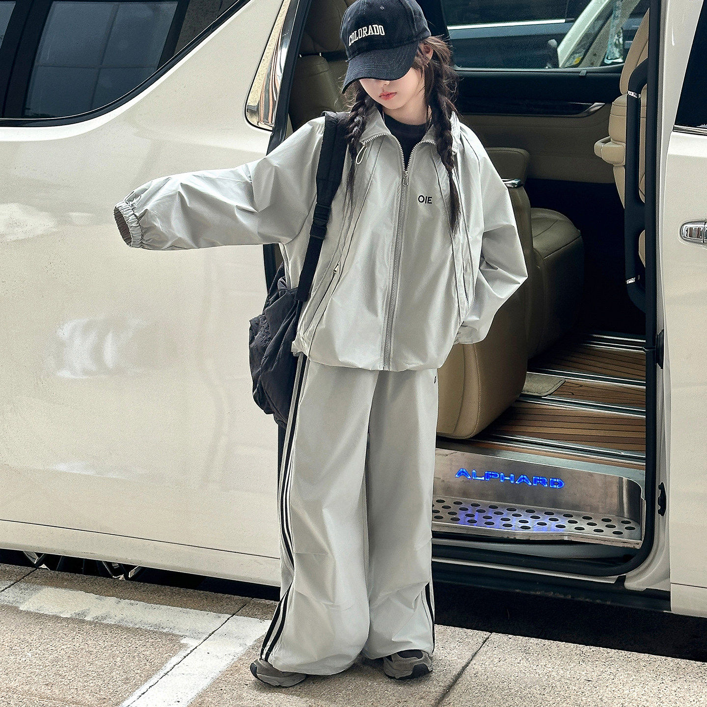 法国轻奢潮童女童运动套装春装2026新款儿童外套初中生女孩冲锋衣