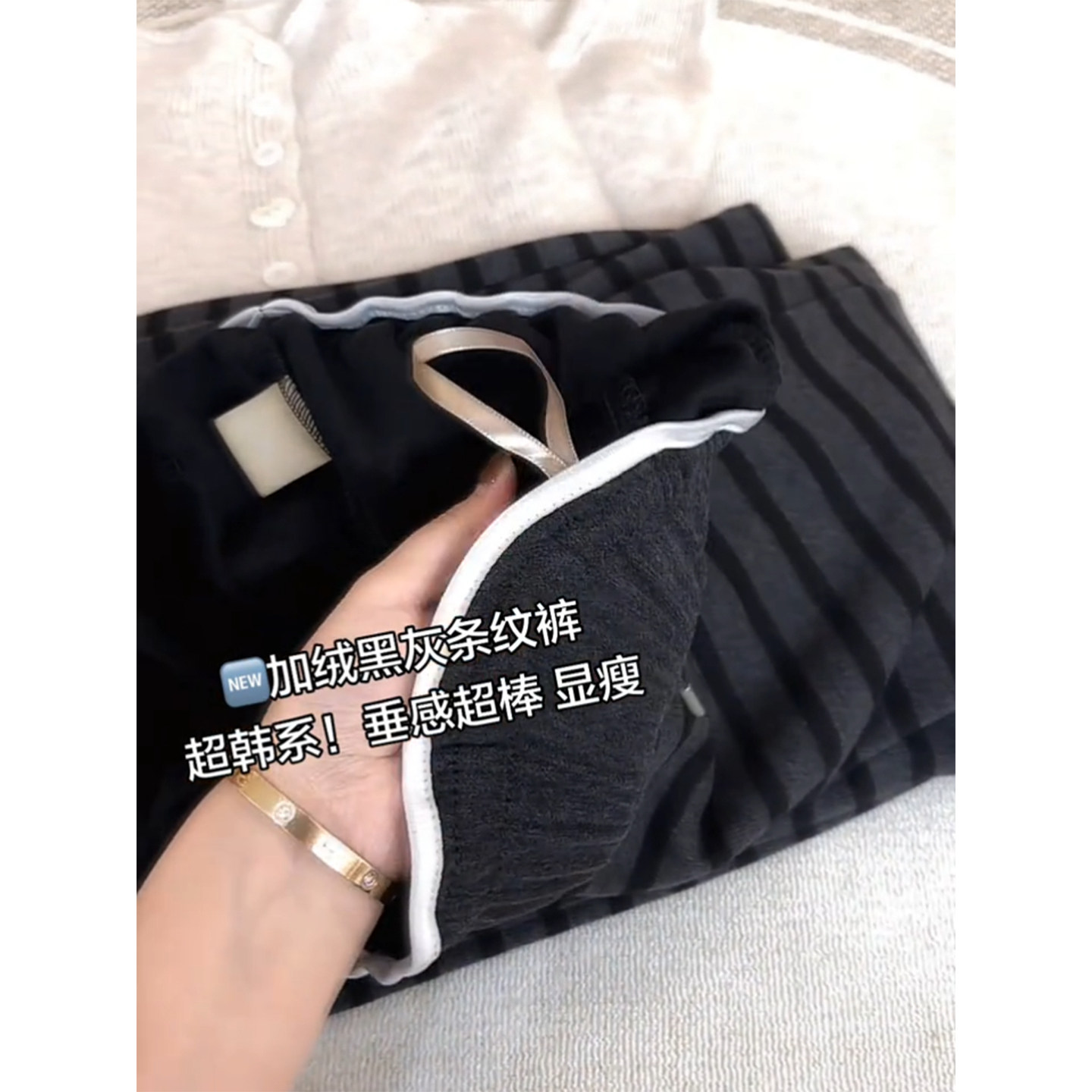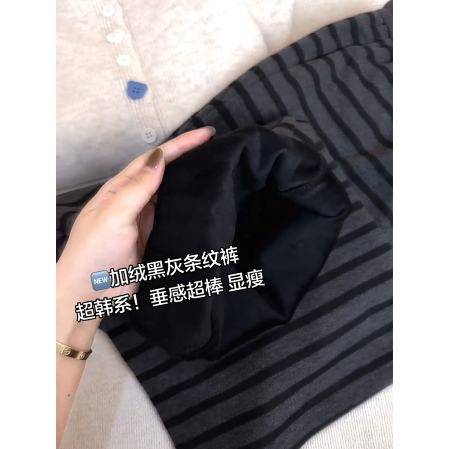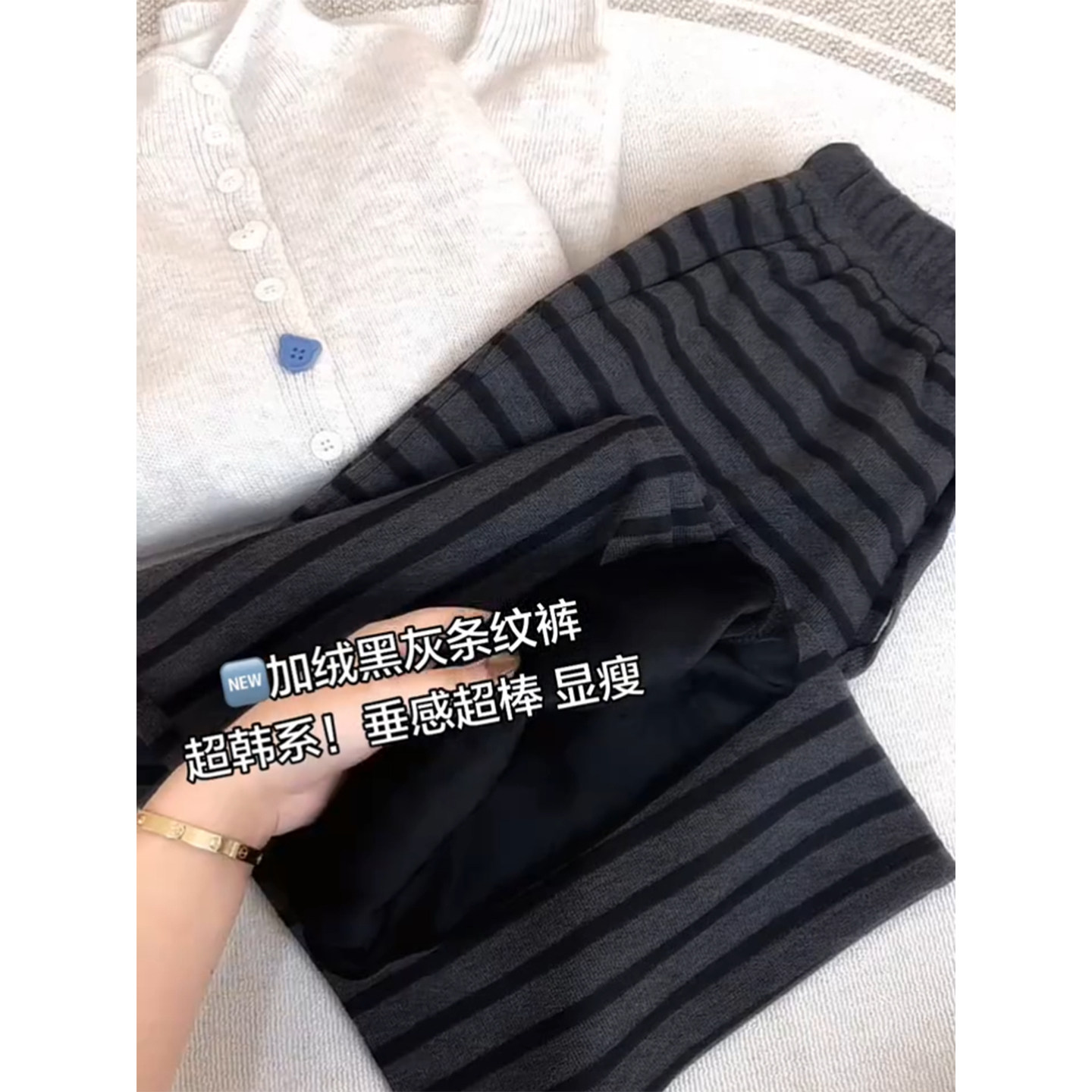 条纹加绒裤子女秋冬季2026新款今年流行爆款加厚休闲运动阔腿长裤