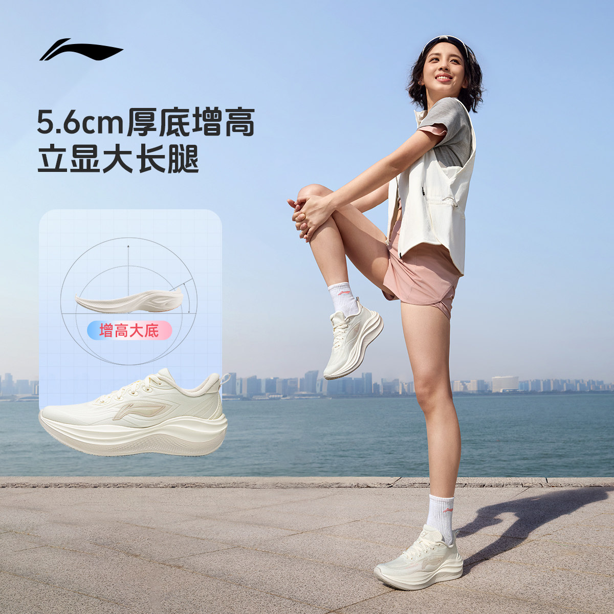 李宁凌波2 | 跑步鞋女款轻便减震软底2026新款厚底增高休闲运动鞋