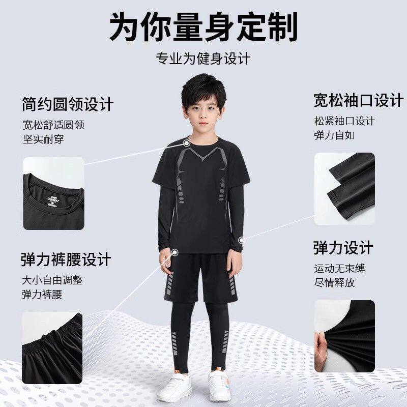 儿童跑步运动套装秋季速干衣散打篮球足球训练服男童秋冬紧身长袖