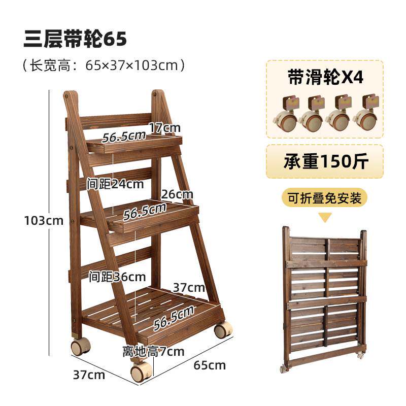 阳台花架子落地式植物摆放架多肉花盆架实木可移动折叠客厅置物架