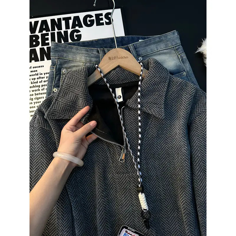 满天星半拉链卫衣男款秋冬加绒加厚长袖polo衫痞帅高级感针织外套