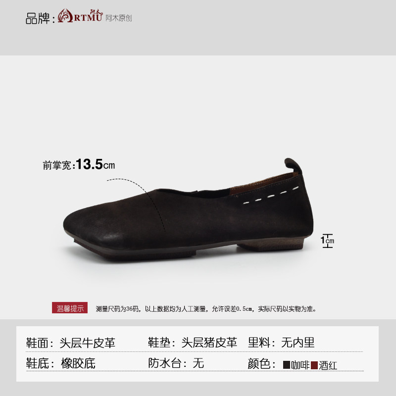 Artmu阿木原创真皮方头女鞋软底单鞋女2026新款春款平底手工鞋