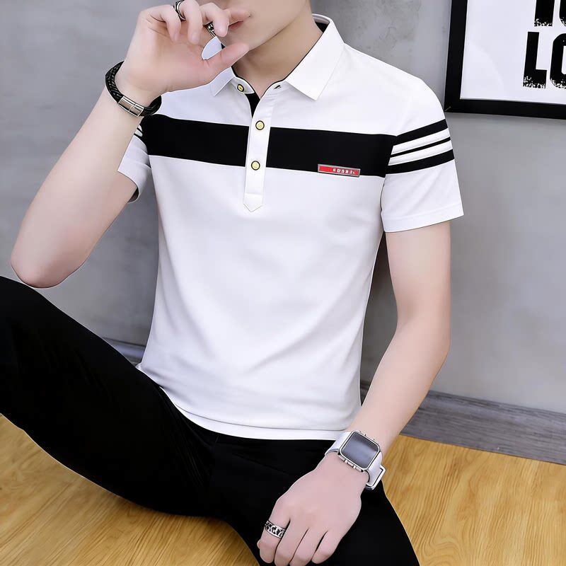 男士短袖T恤翻领POLO衫夏季新款韩版修身衬衫领体恤衣服青年半袖