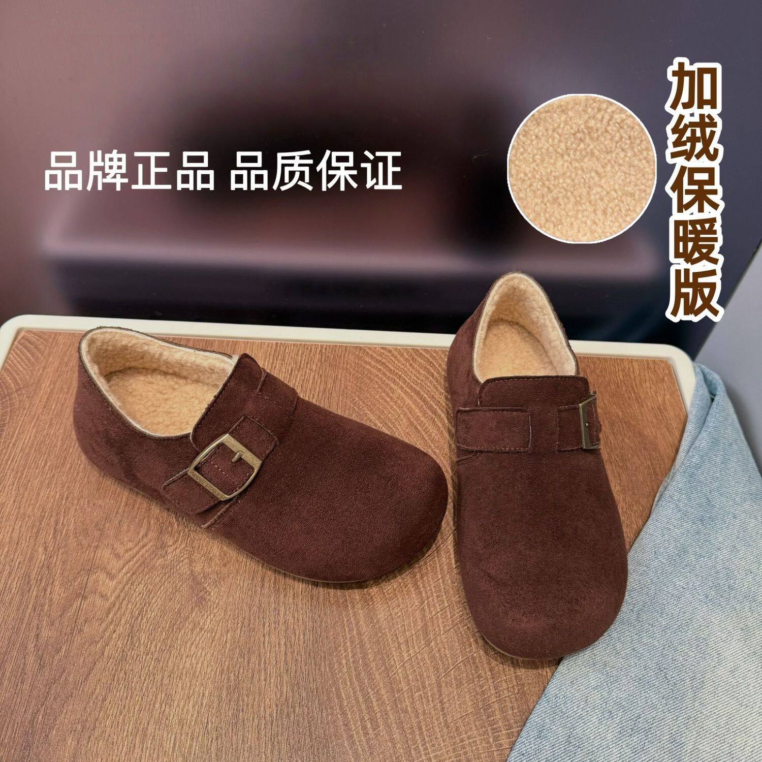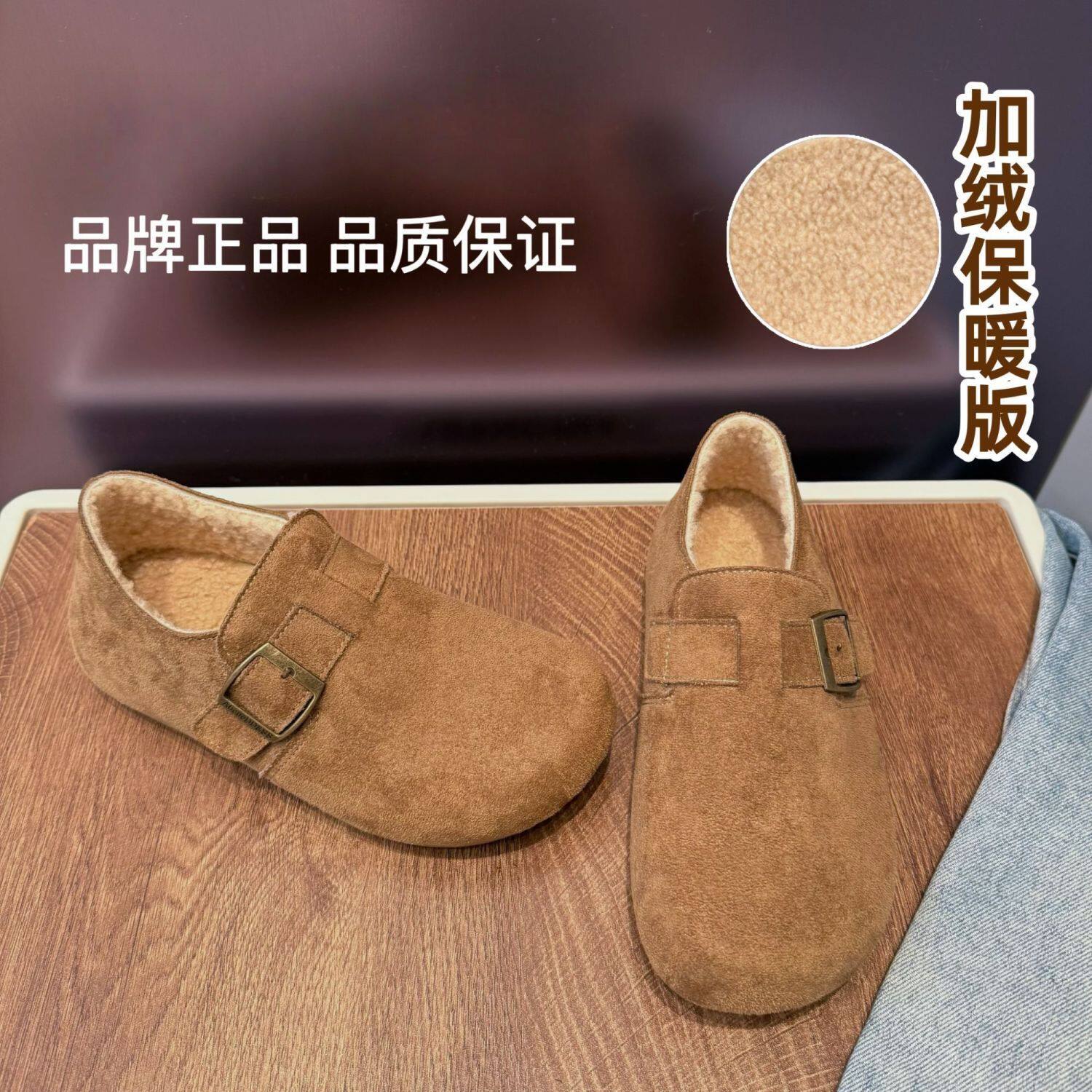 品牌正品羊羔绒全包勃肯鞋女加绒保暖懒人一脚蹬搭扣魔术贴毛毛鞋