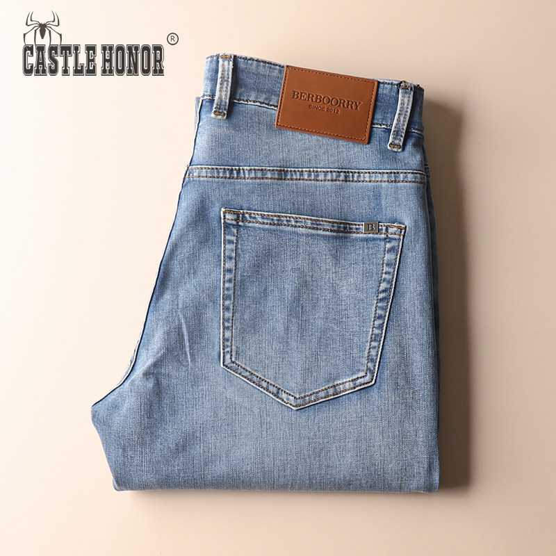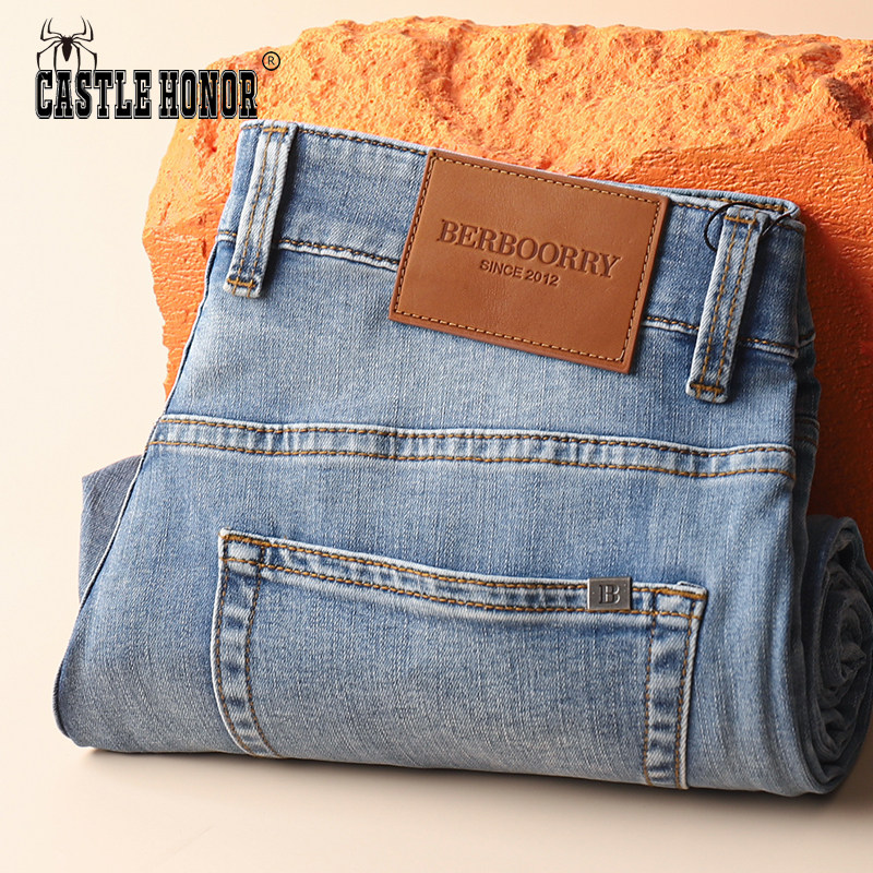 意大利高端牛仔裤男2026新款春夏季薄款浅蓝色直筒宽松高档长裤子