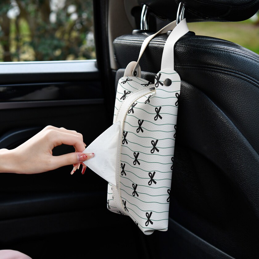 可爱蝴蝶结皮革纸巾盒纸巾袋挂式汽车抽纸盒车载纸巾套创意高级感