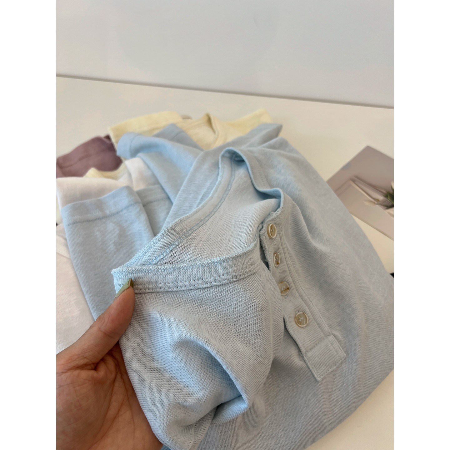 韩版复古亨利领纽扣长袖T恤女修身显瘦内搭打底衫洋气时髦秋季潮
