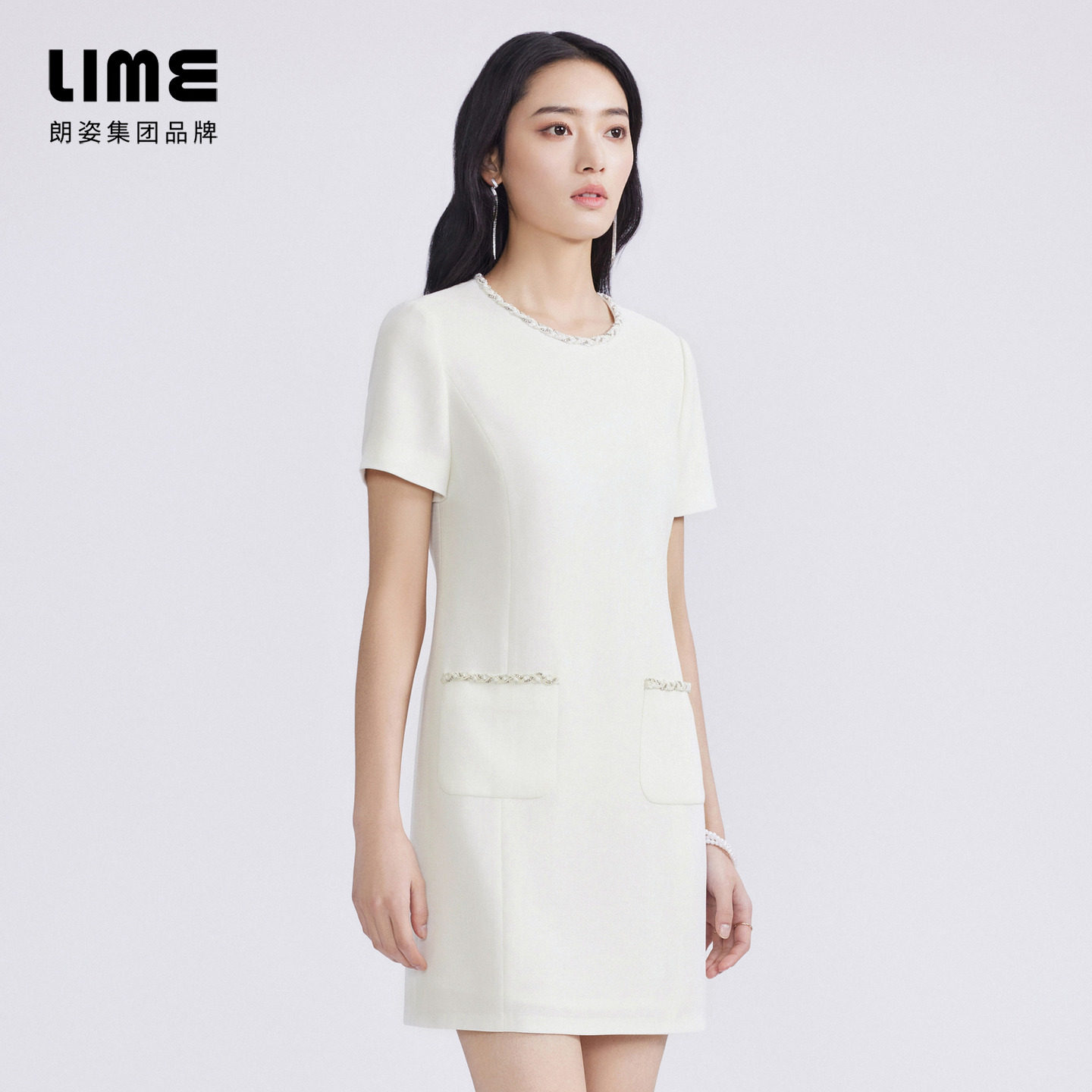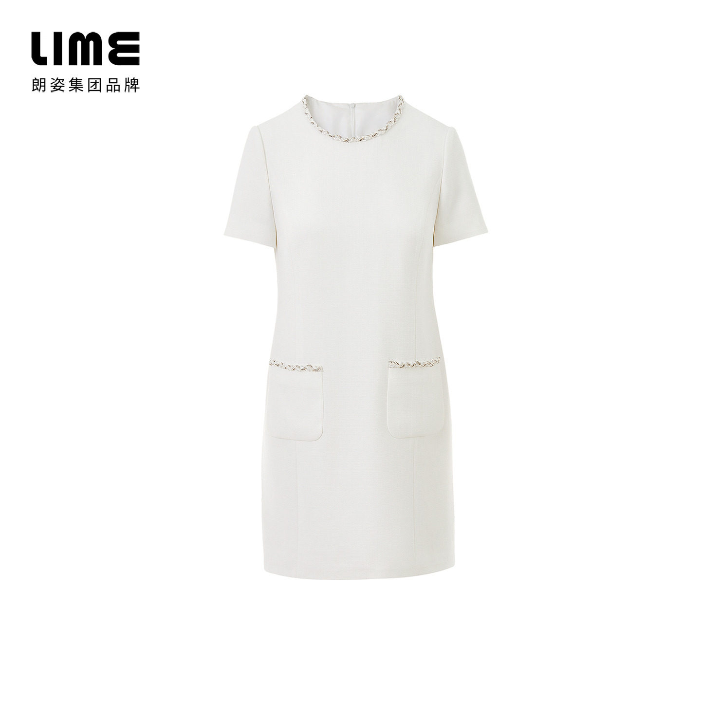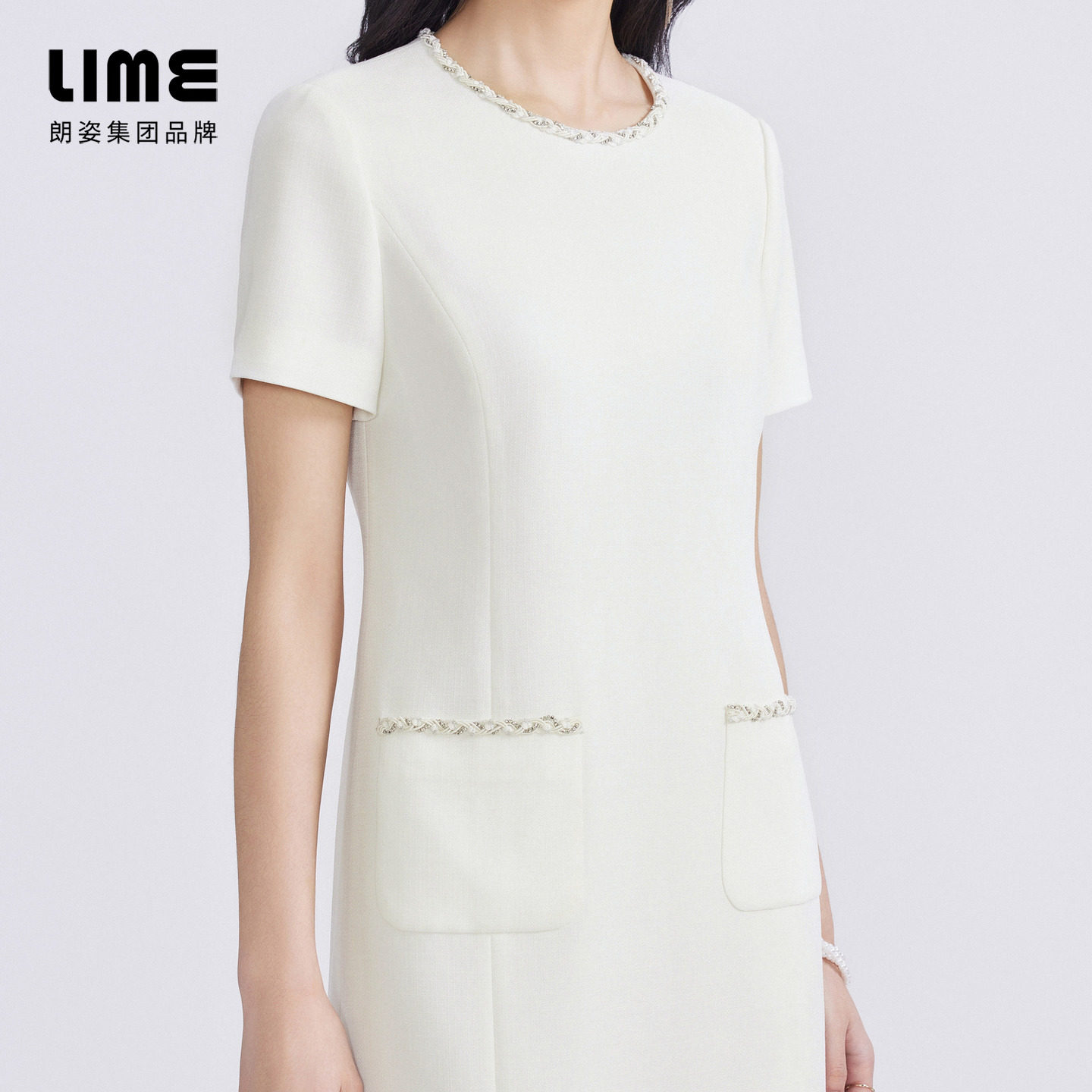 LIME莱茵年春夏新款连衣裙黑白色职业通勤圆领小香风法式优雅裙