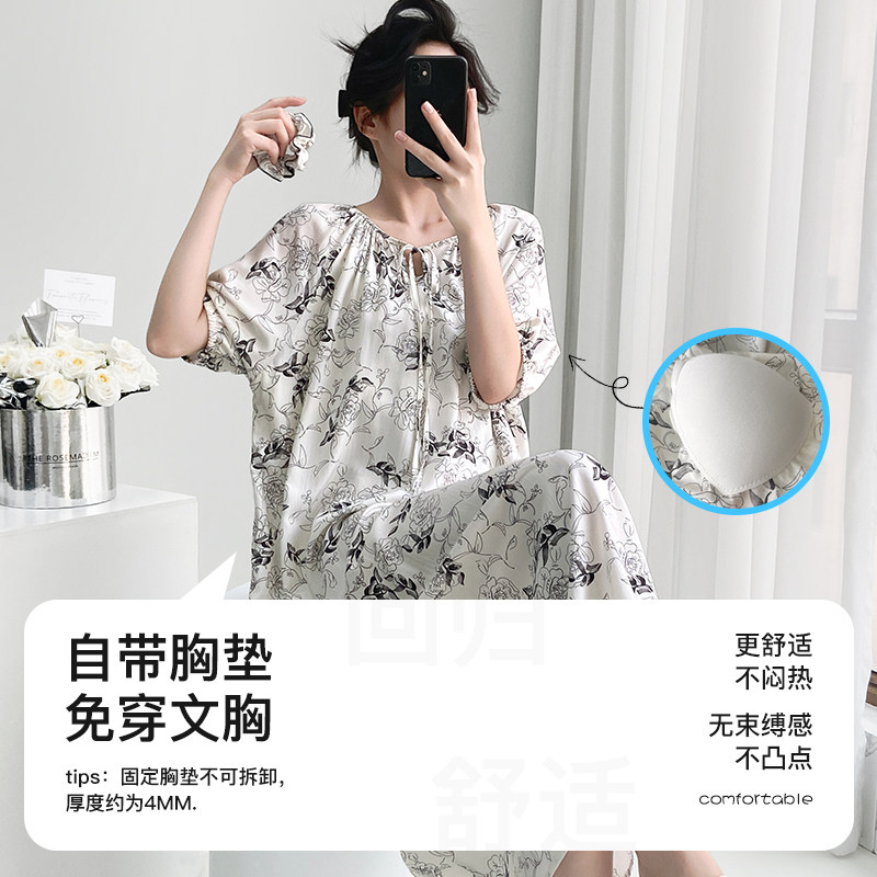 棉绸睡衣女款2026新款夏带胸垫女士可外穿绵绸连衣裙女人造棉睡裙