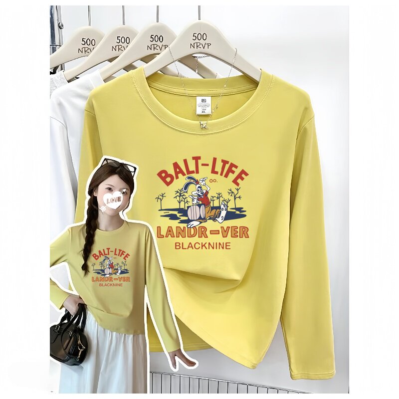 长袖T恤女春季2026新款流行女装早春薄款上衣黄色内搭打底衫外穿