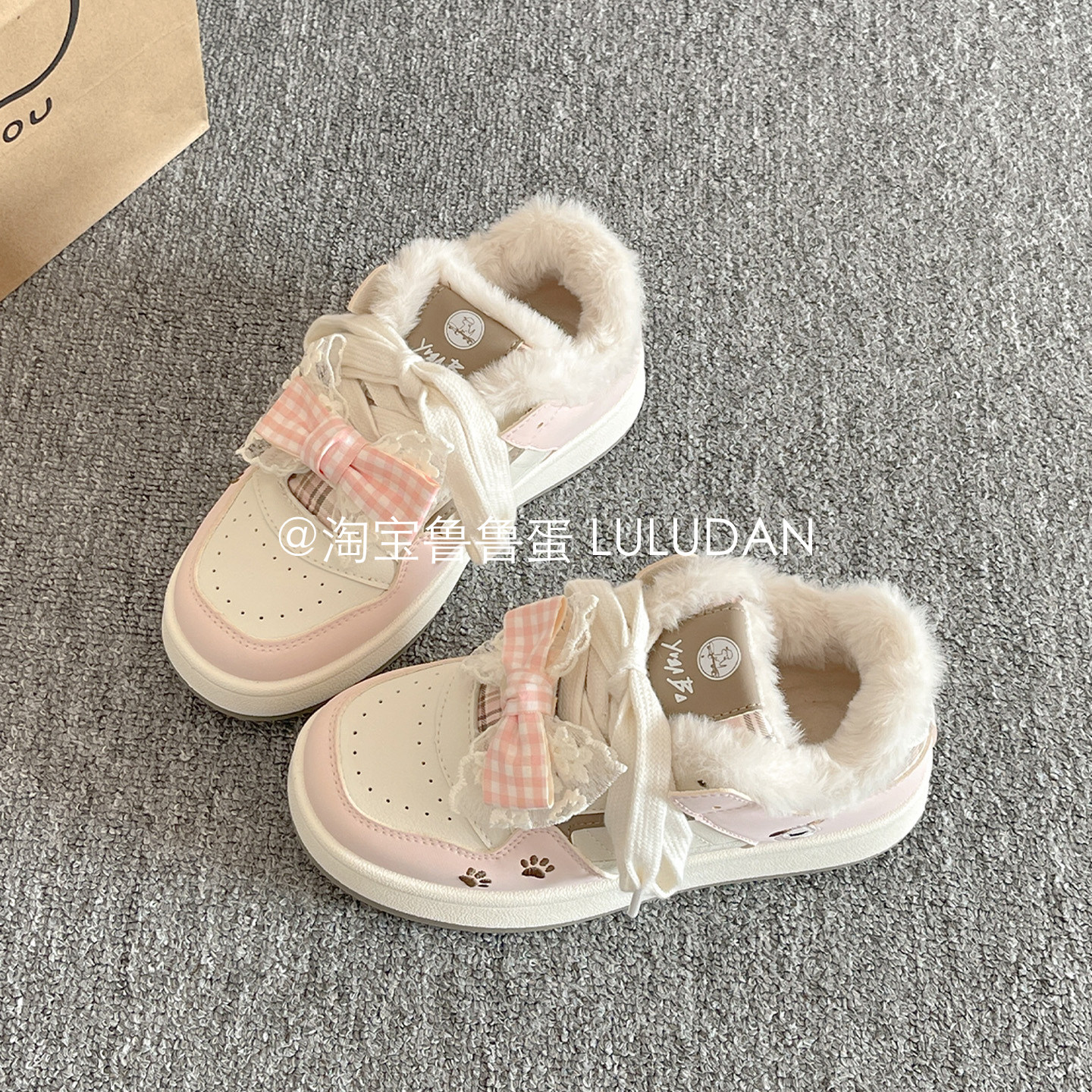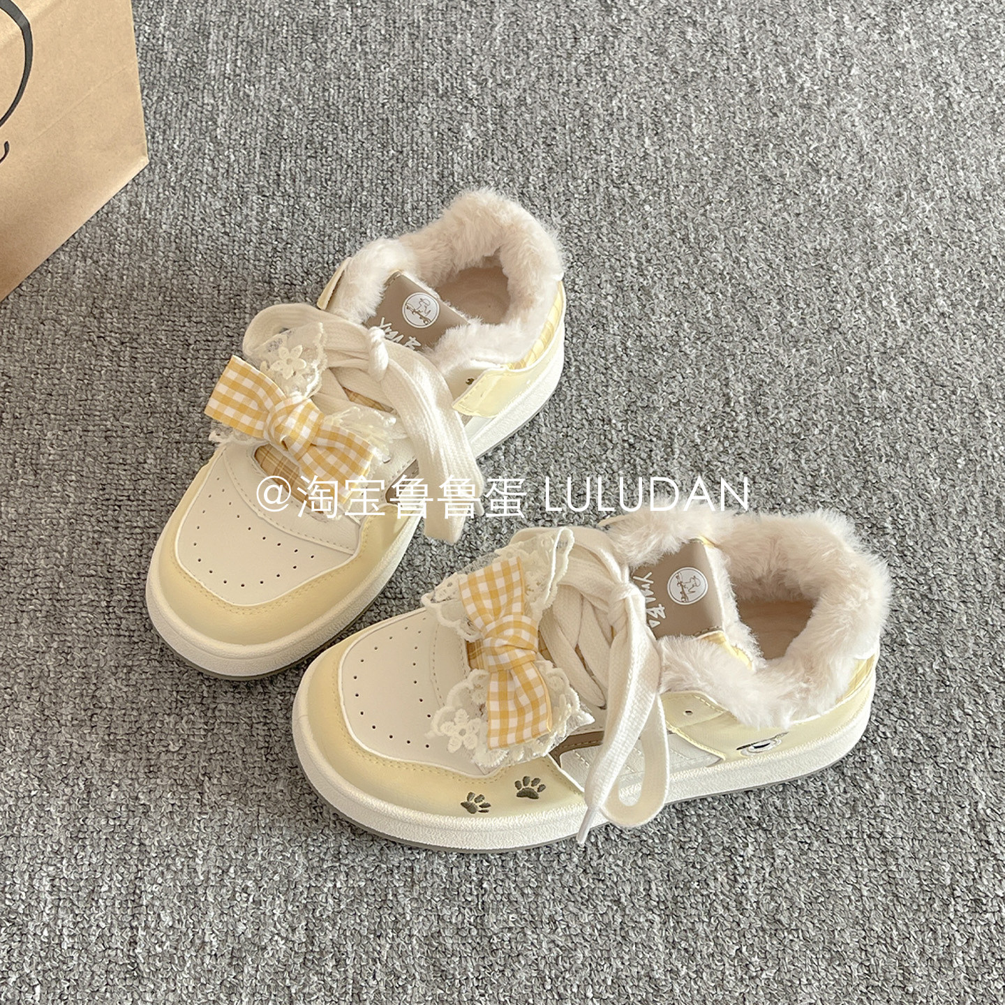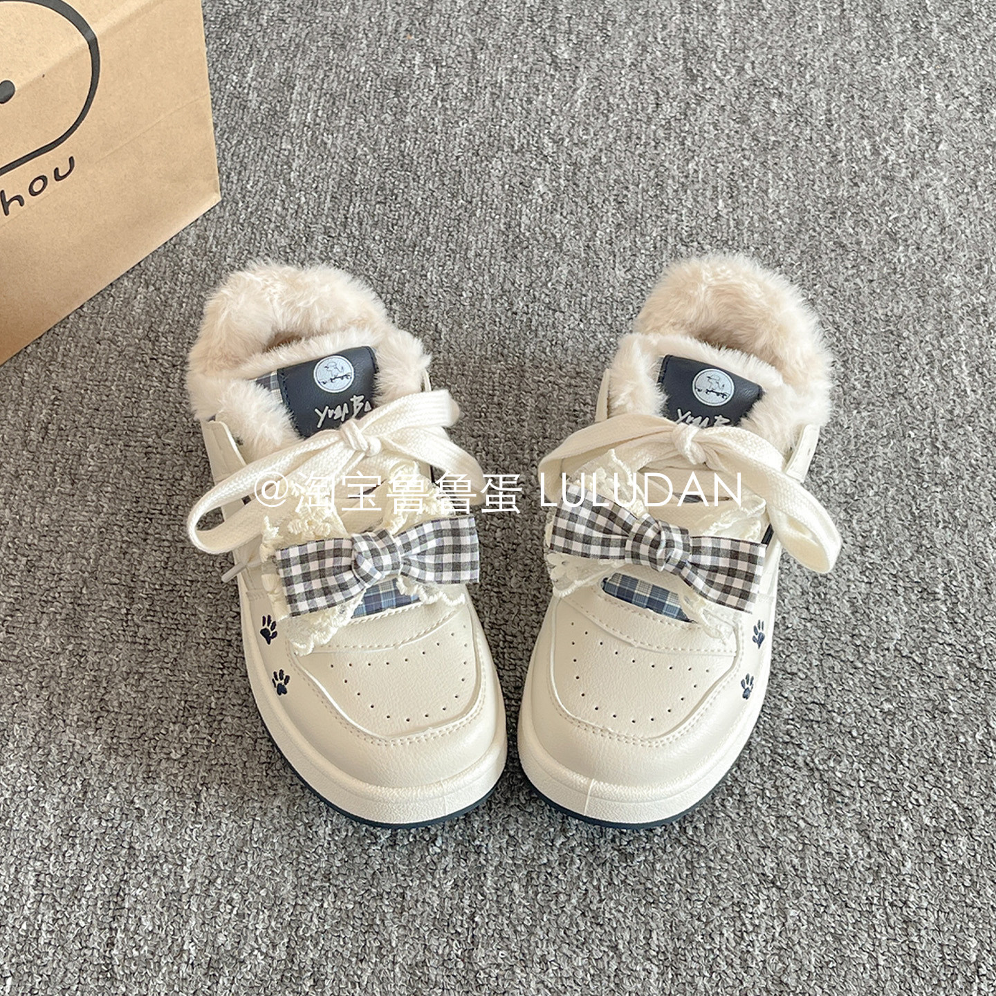 鲁鲁蛋 厚底小白鞋女款2026新款春季保暖加绒二棉鞋板鞋面包鞋子