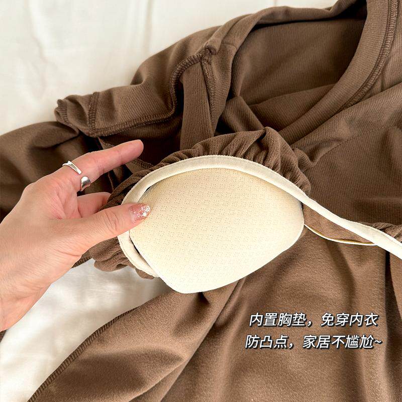 冬季加厚保暖带胸垫时尚洋气家居服套装睡衣女士可外穿高级感韩版