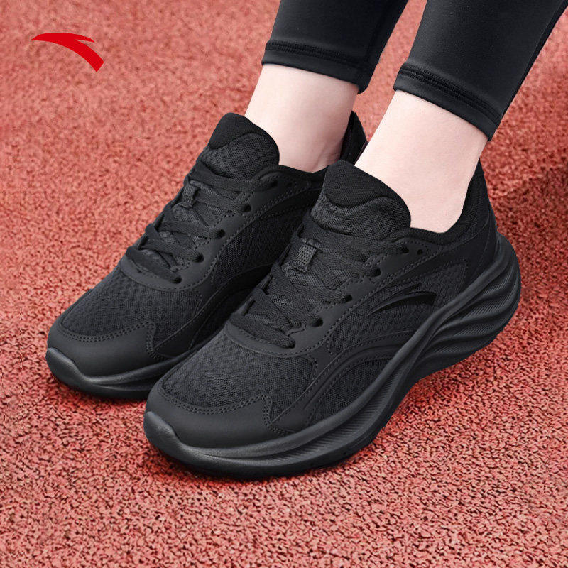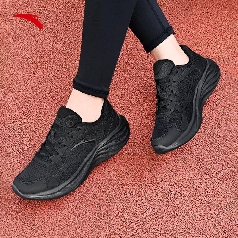 安踏女鞋黑色运动鞋女款2026春季新款软底缓震不累脚休闲跑步鞋子