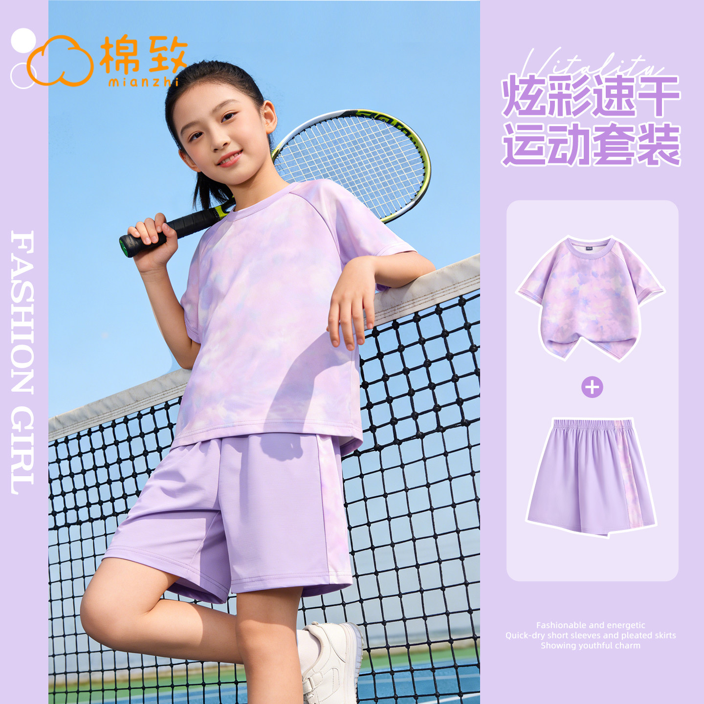棉致女童运动套装夏季2026新款薄款速干短袖女孩短裤儿童夏装衣服