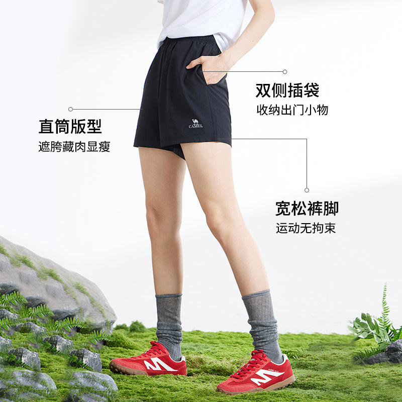 骆驼女装速干运动短裤2026新款夏季轻薄透气宽松直筒休闲五分裤子