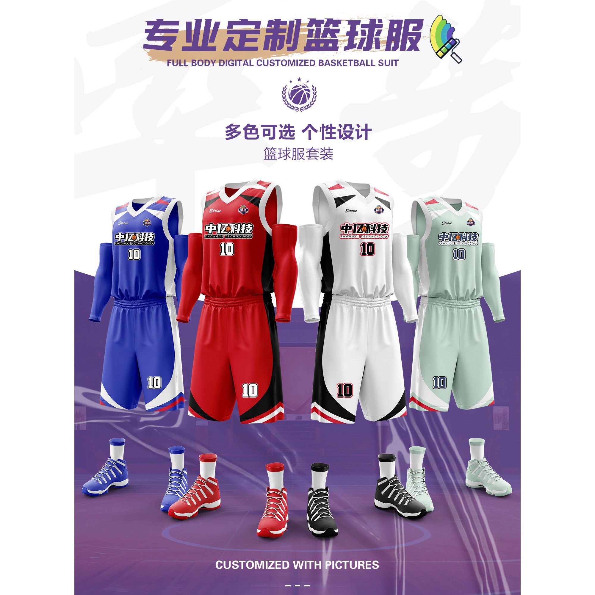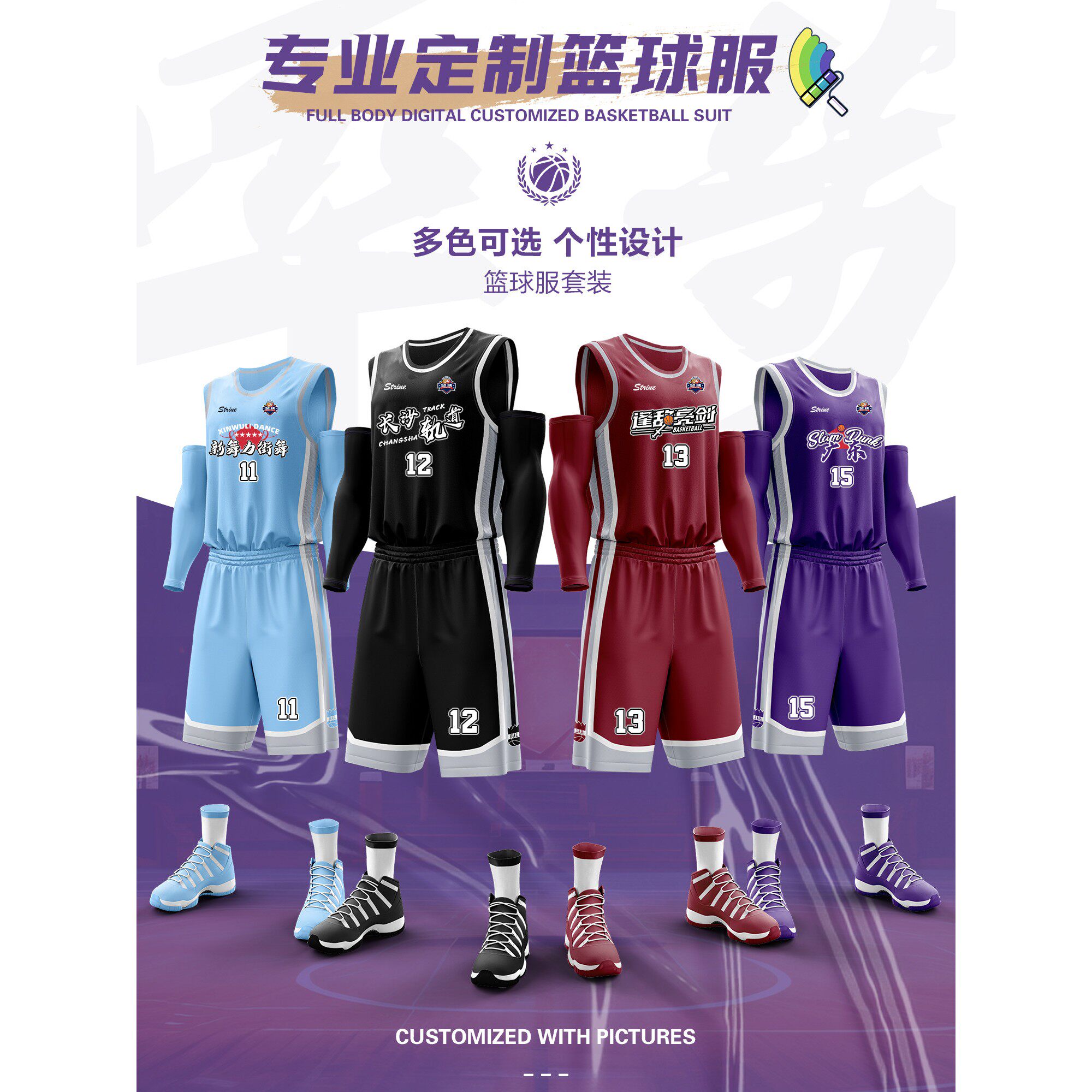 紫色篮球服套装男定制球衣印字夏季运动训练背心比赛队服订制订做