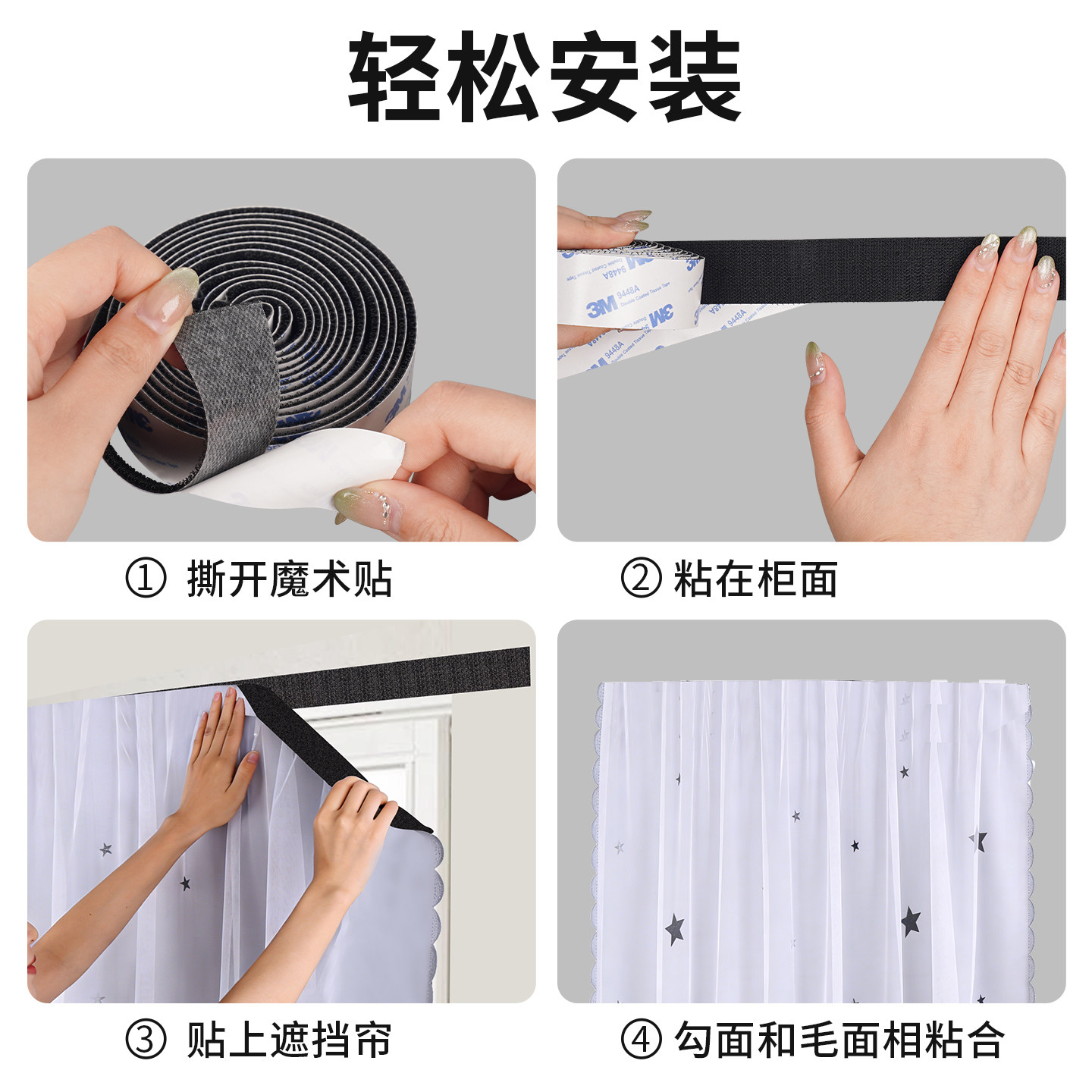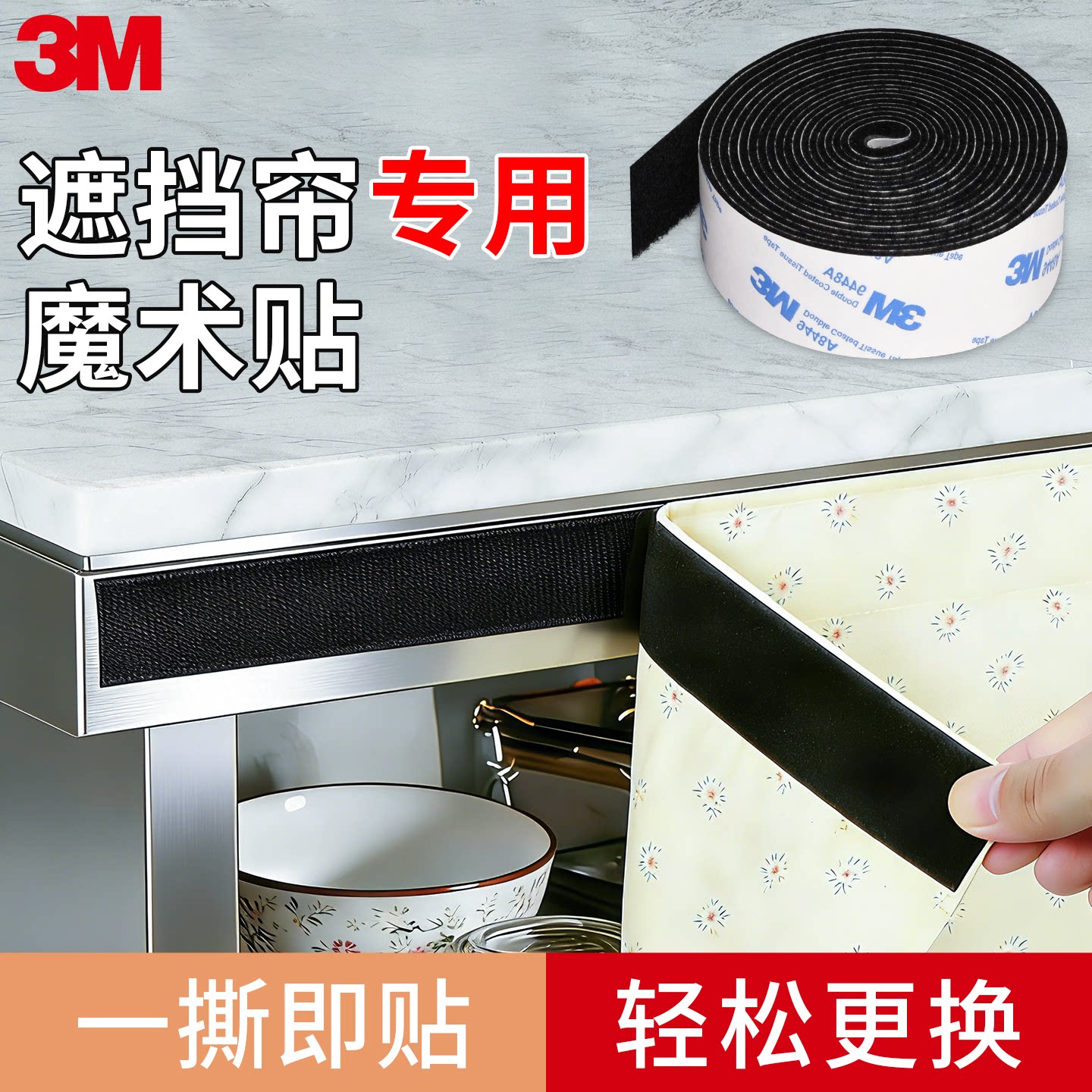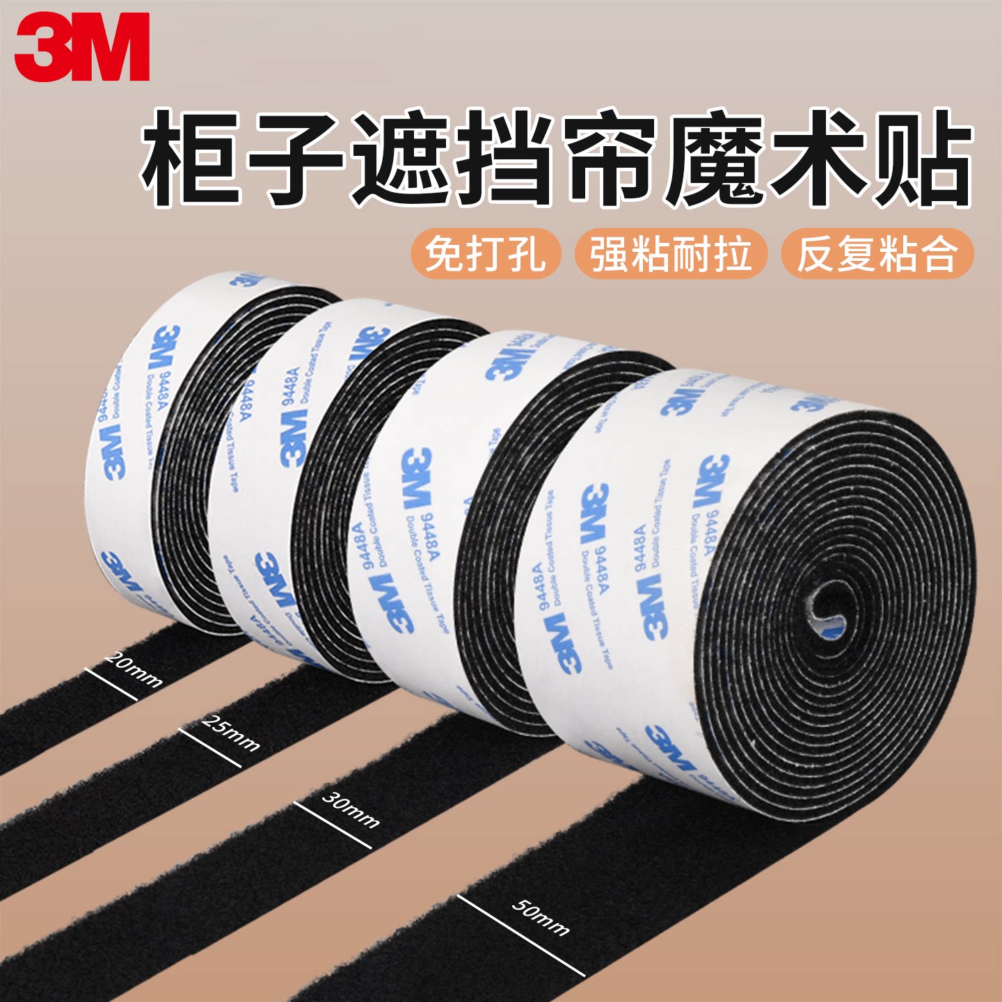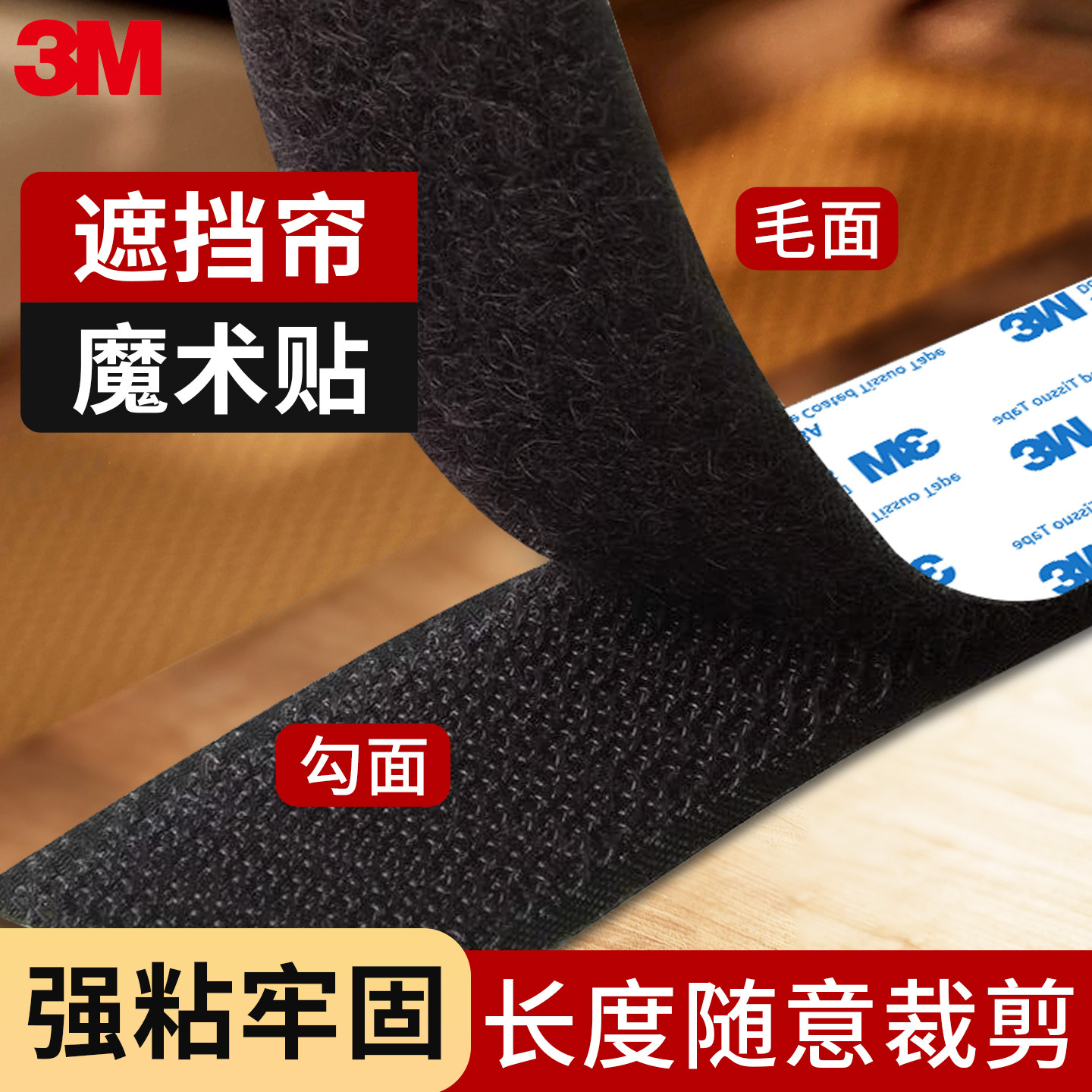 3M魔术贴带背胶汽车脚垫沙发垫固定门帘纱窗遮挡强粘子母扣贴条