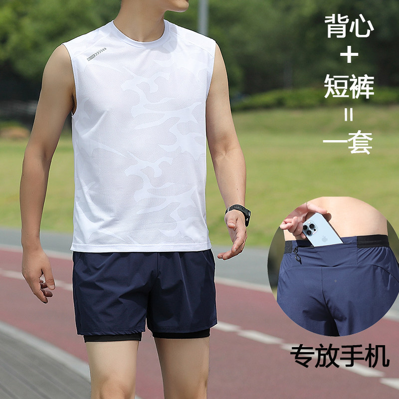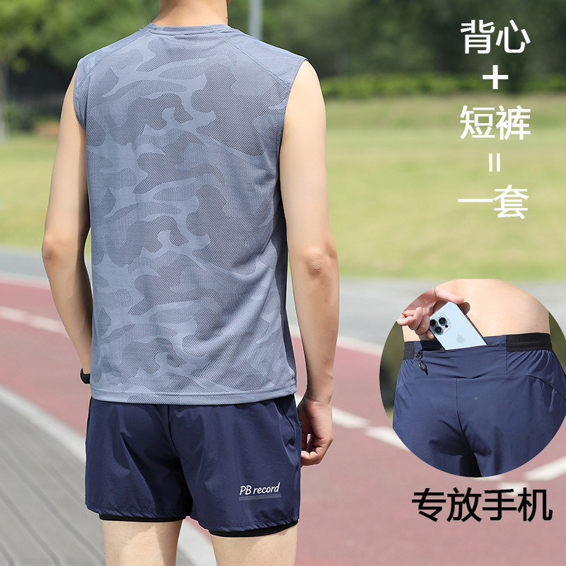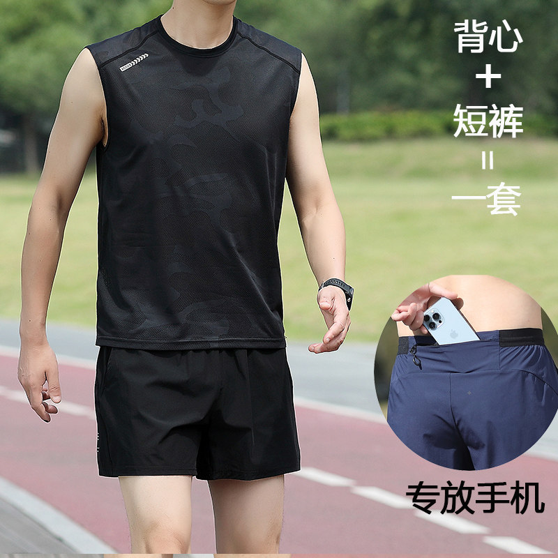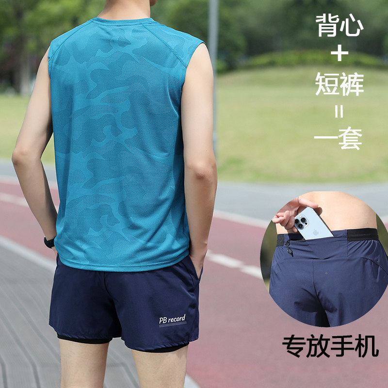 【运动套装】可放手机跑步专用短裤男款三分裤马拉松速干背心坎肩