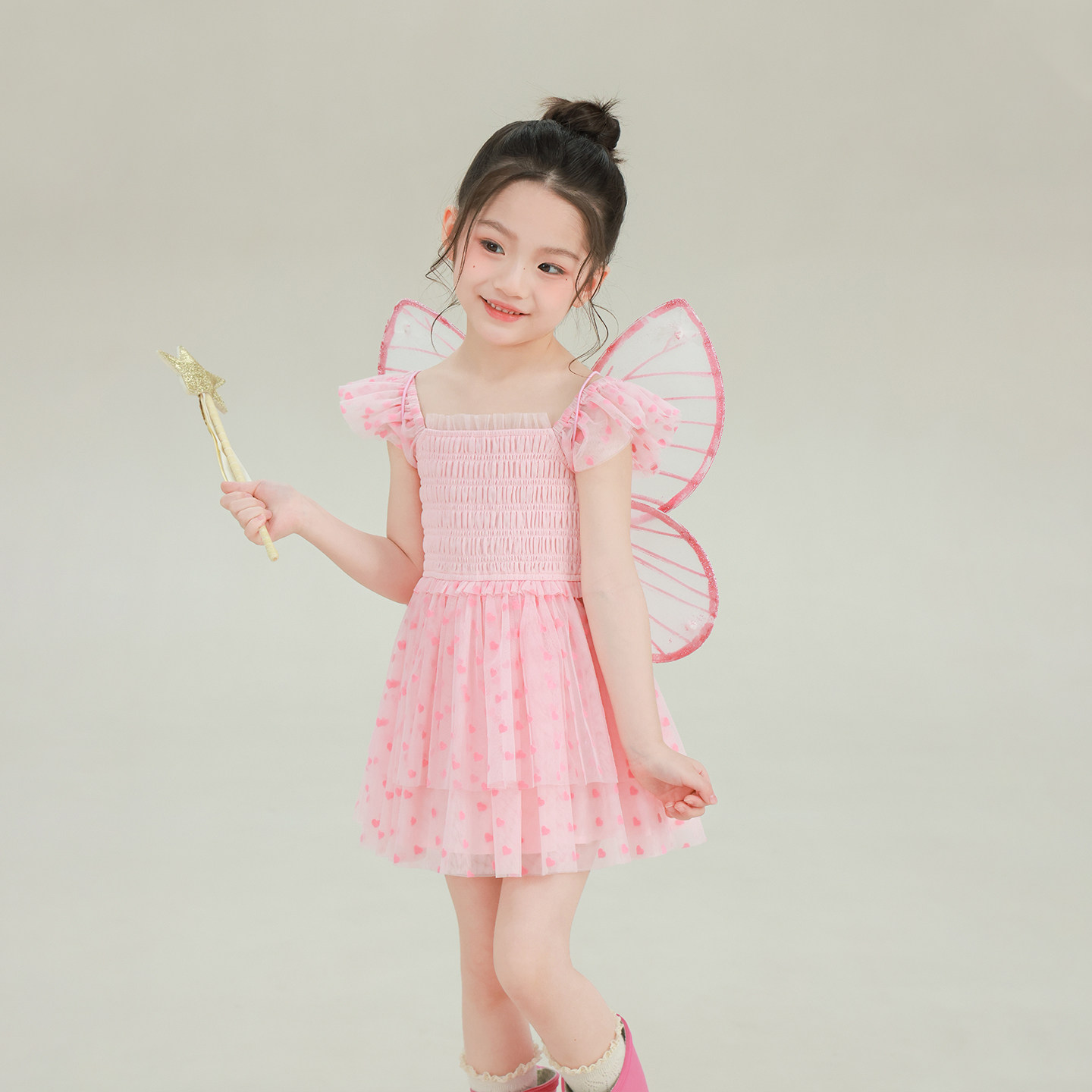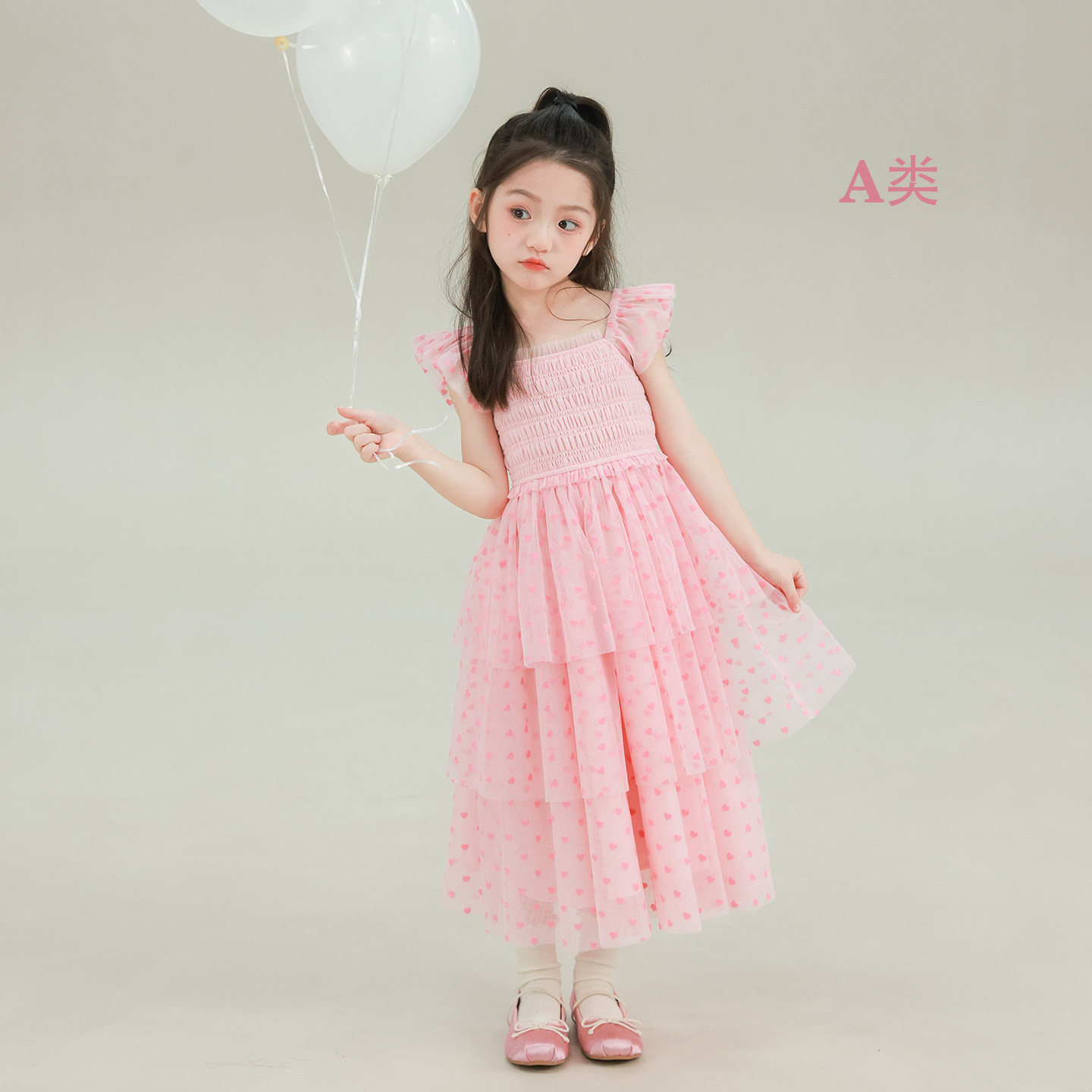 大耳象女童爱心打揽长款连衣裙短款连衣裙2026春夏新款宝儿裙子