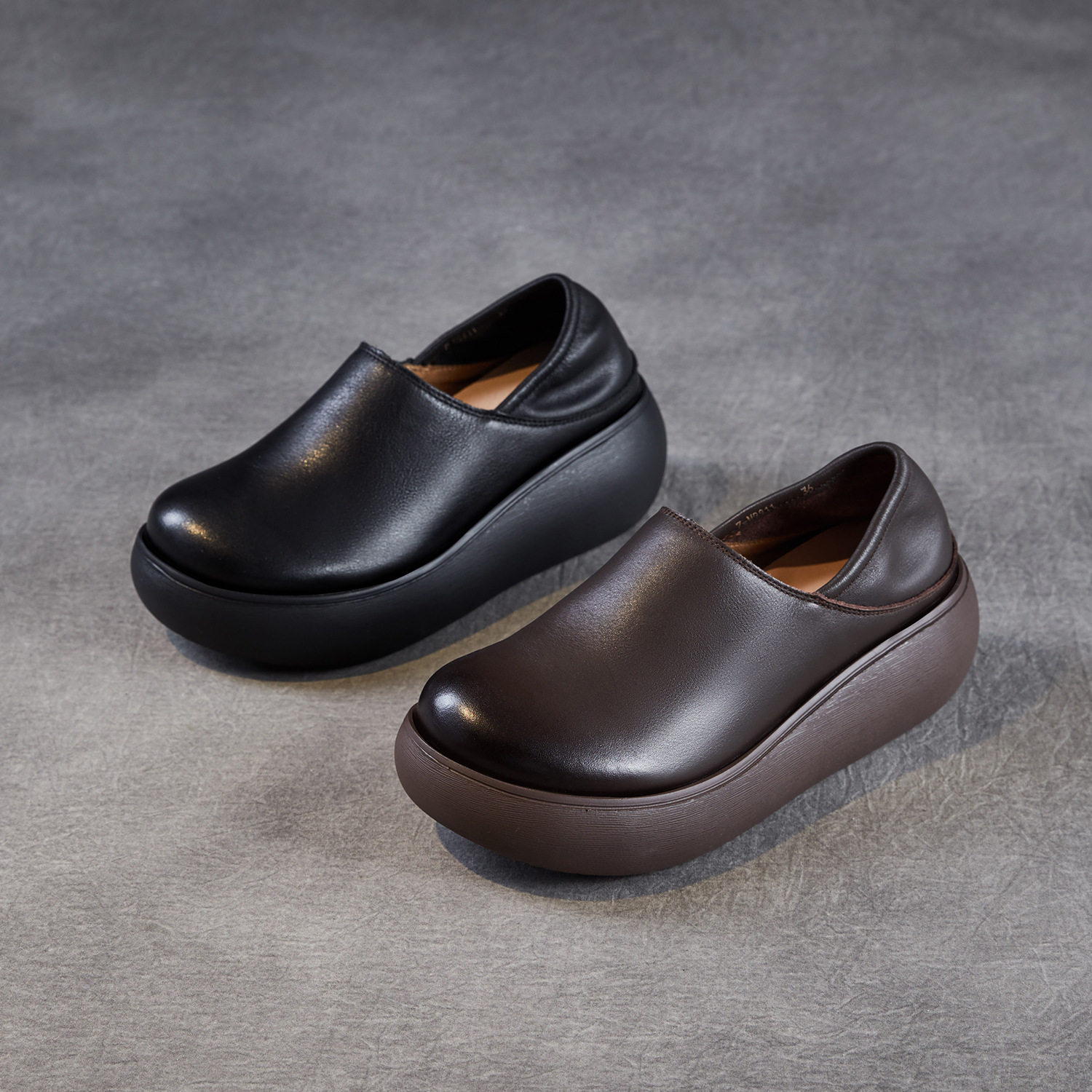 625头层牛皮两穿厚底松糕乐福单鞋女25春秋新款一脚蹬复古勃肯鞋